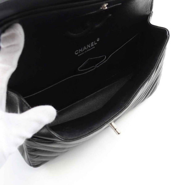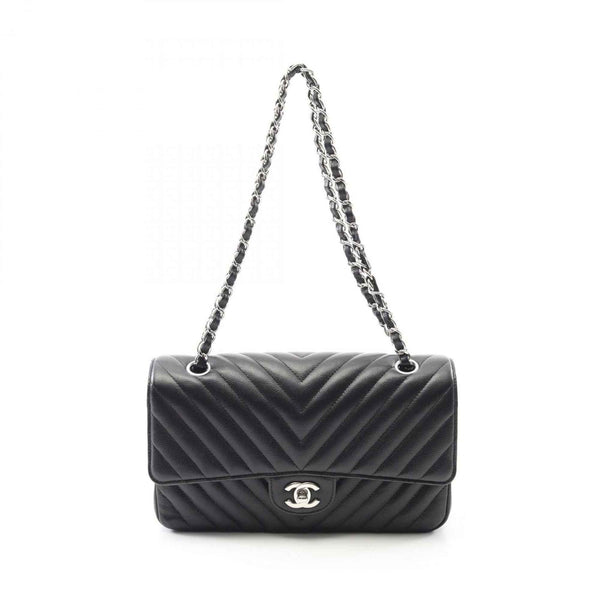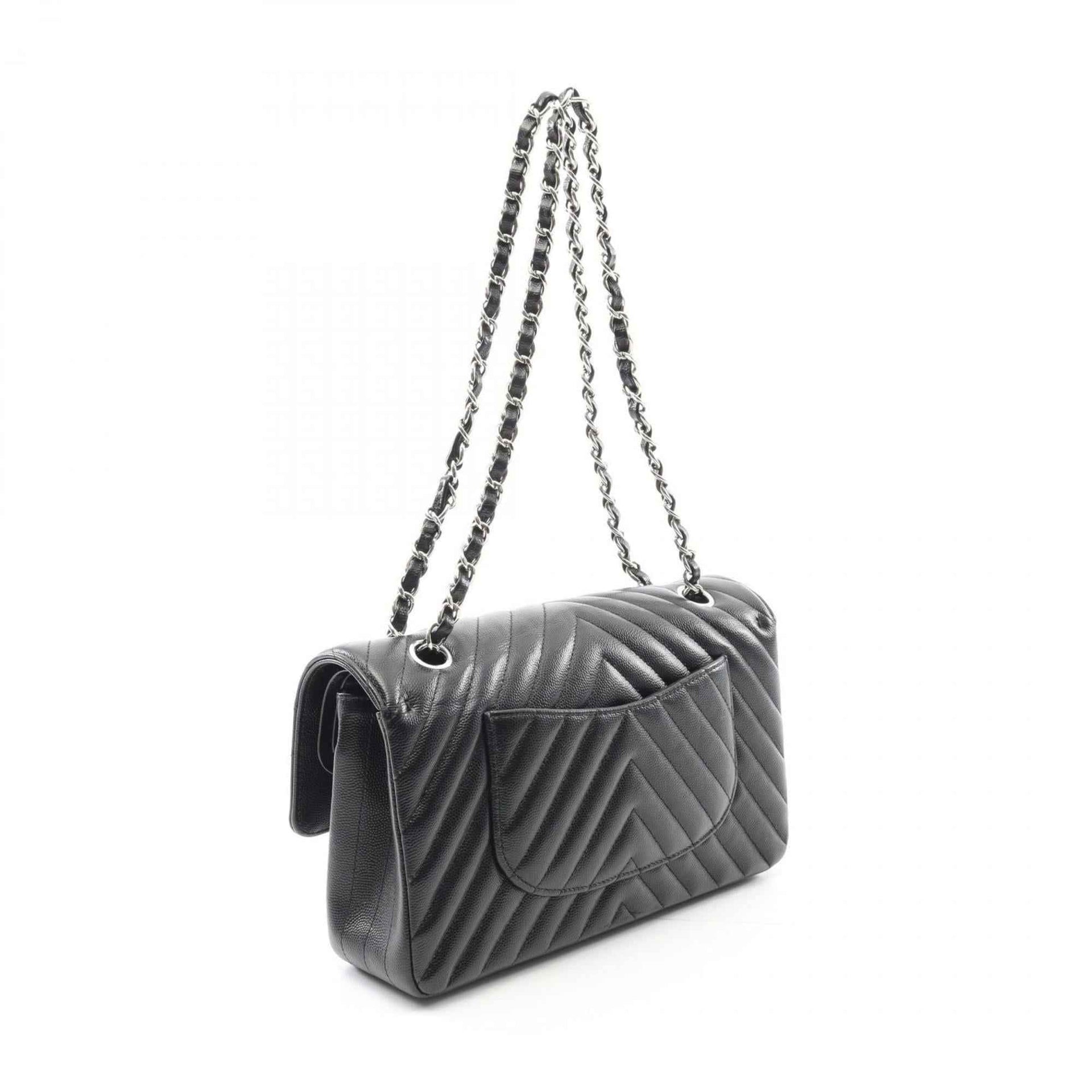 CHANEL Chevron V-Stitch Shoulder Bag in Caviar (Grained Calfskin) for Women, Black