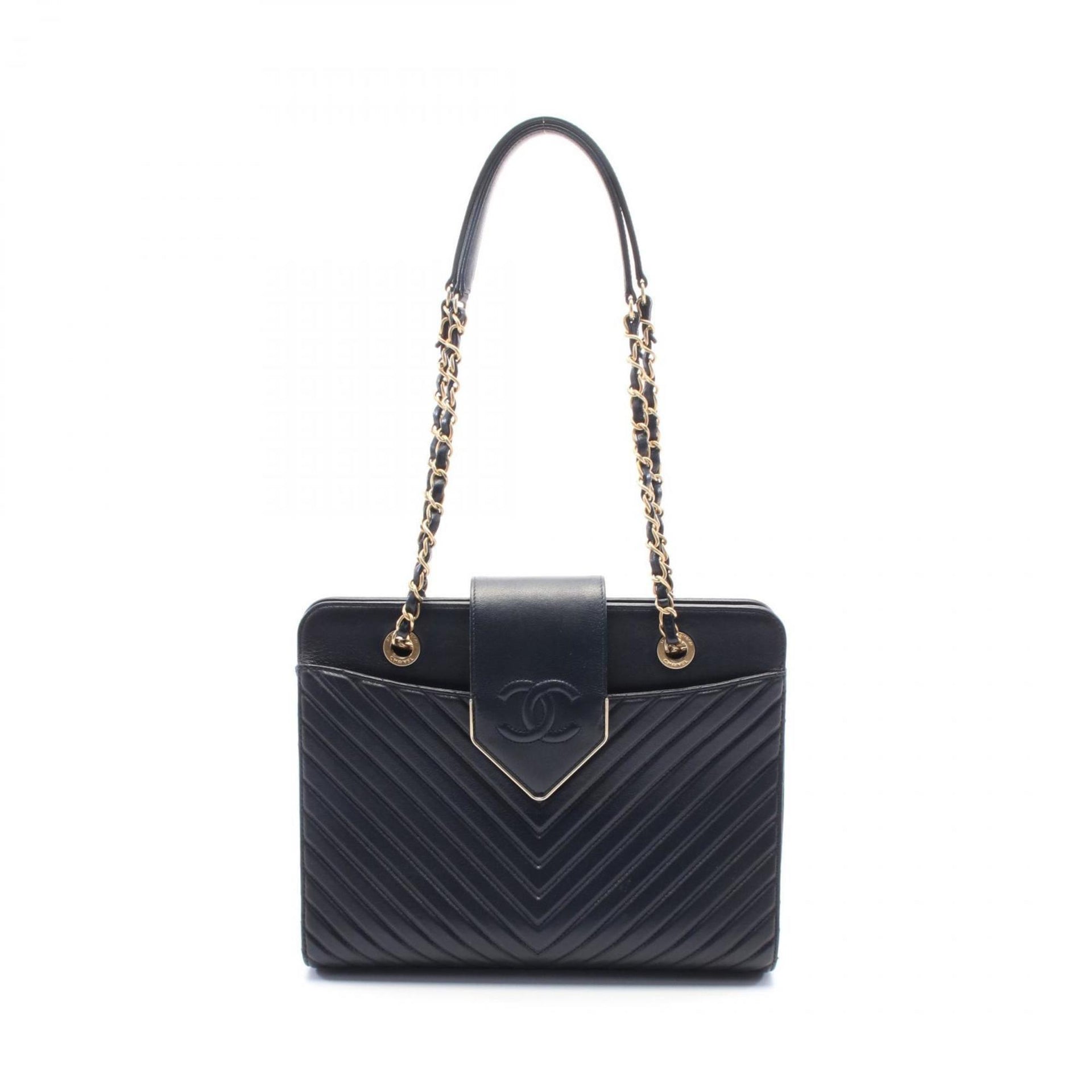 CHANEL Chevron V-stitch shoulder bag leather women\'s navy A93418