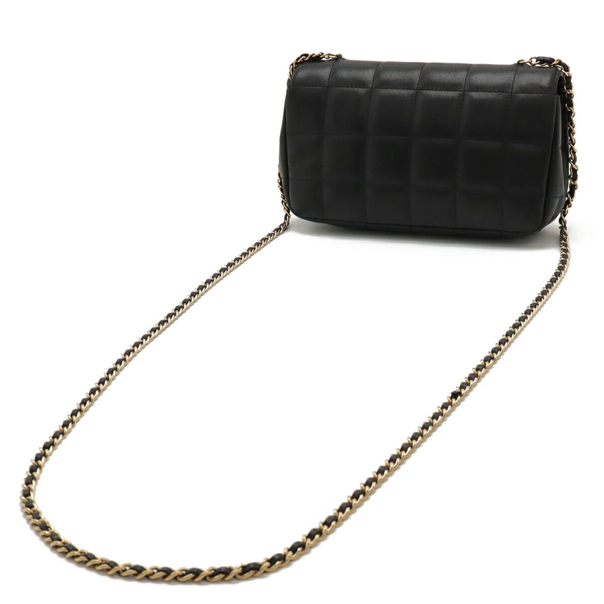 CHANEL Chocobar Coco Mark Chain Shoulder Bag in Black Leather