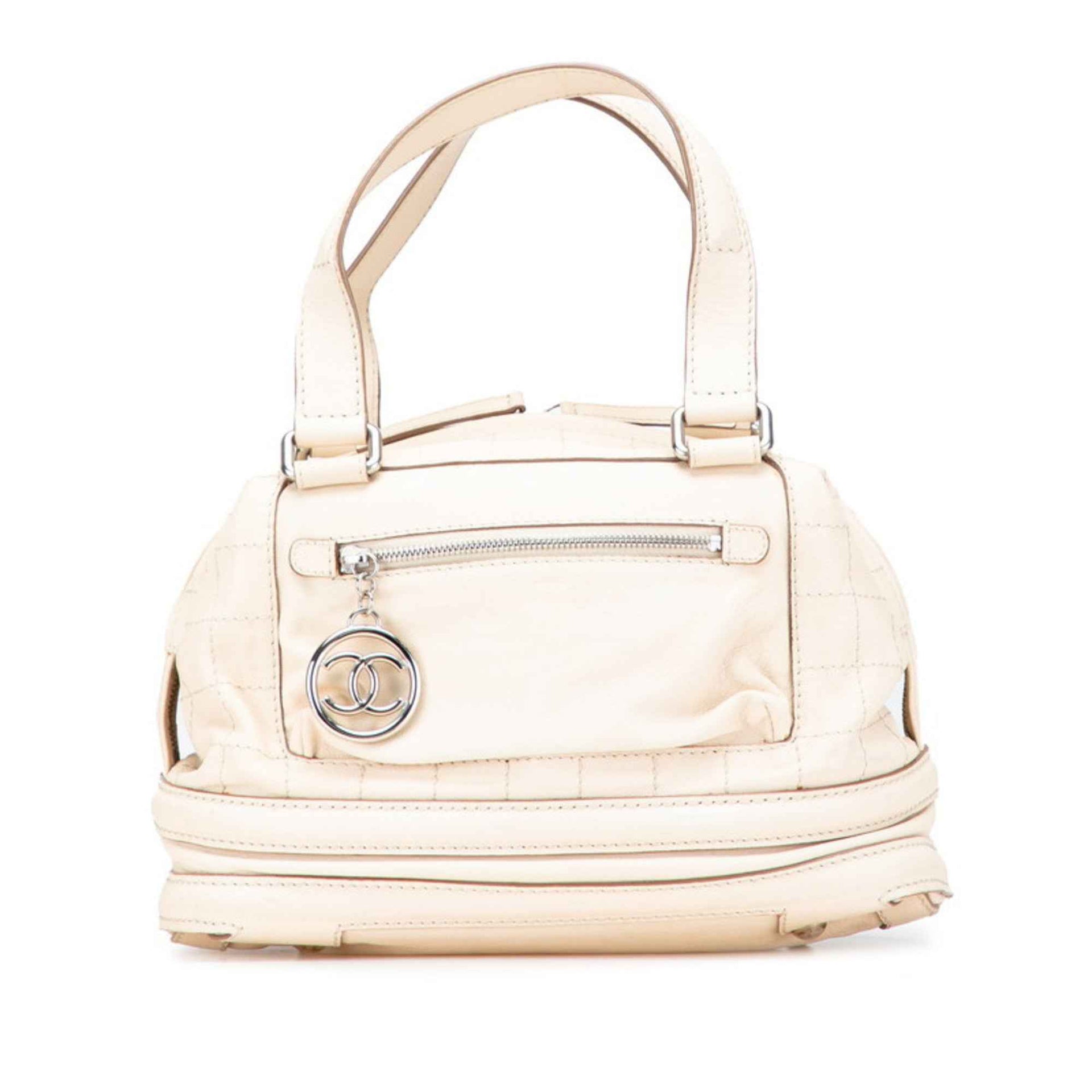 Chanel Chocobar Coco Mark Handbag, Beige Leather, Women\'s, CHANEL