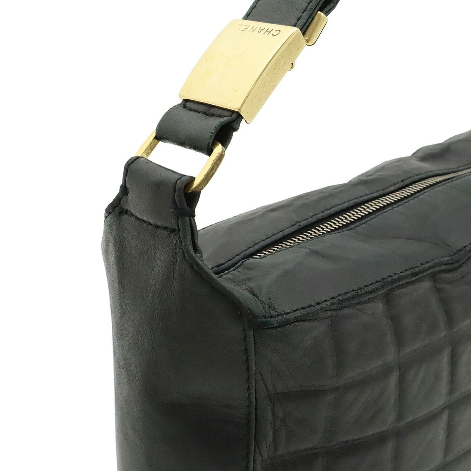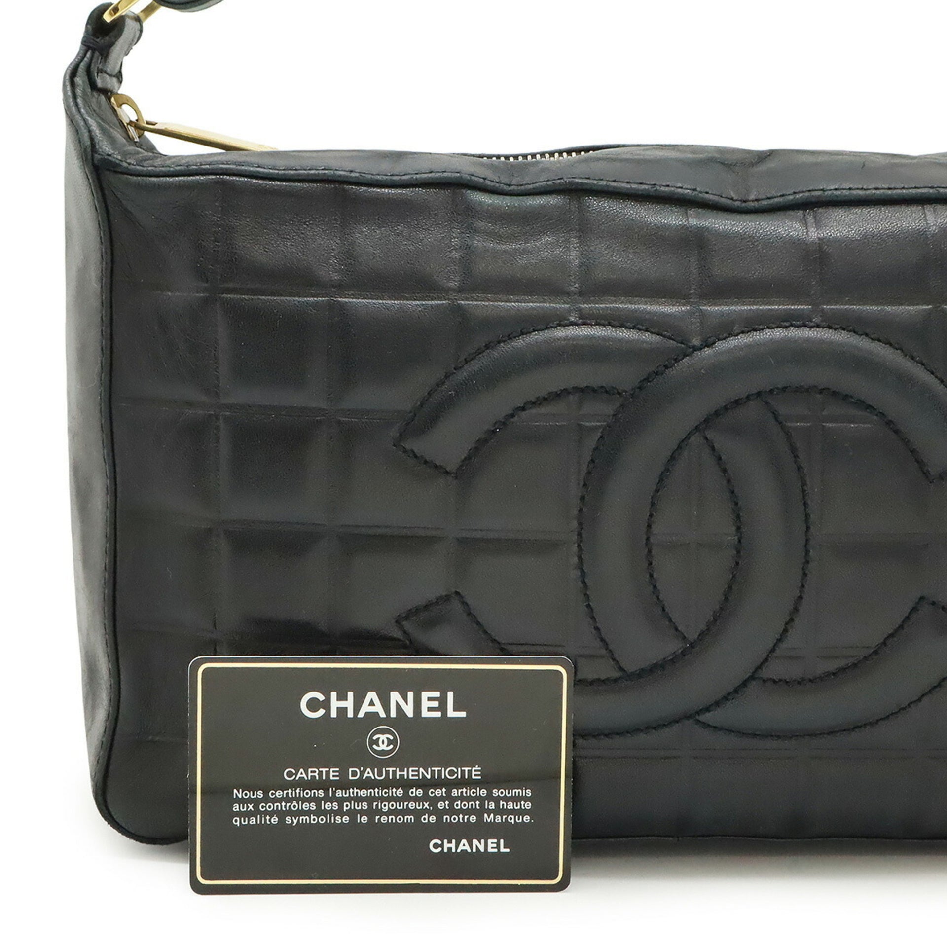 CHANEL Chocobar Coco Mark Shoulder Bag Handbag Lambskin Leather Black