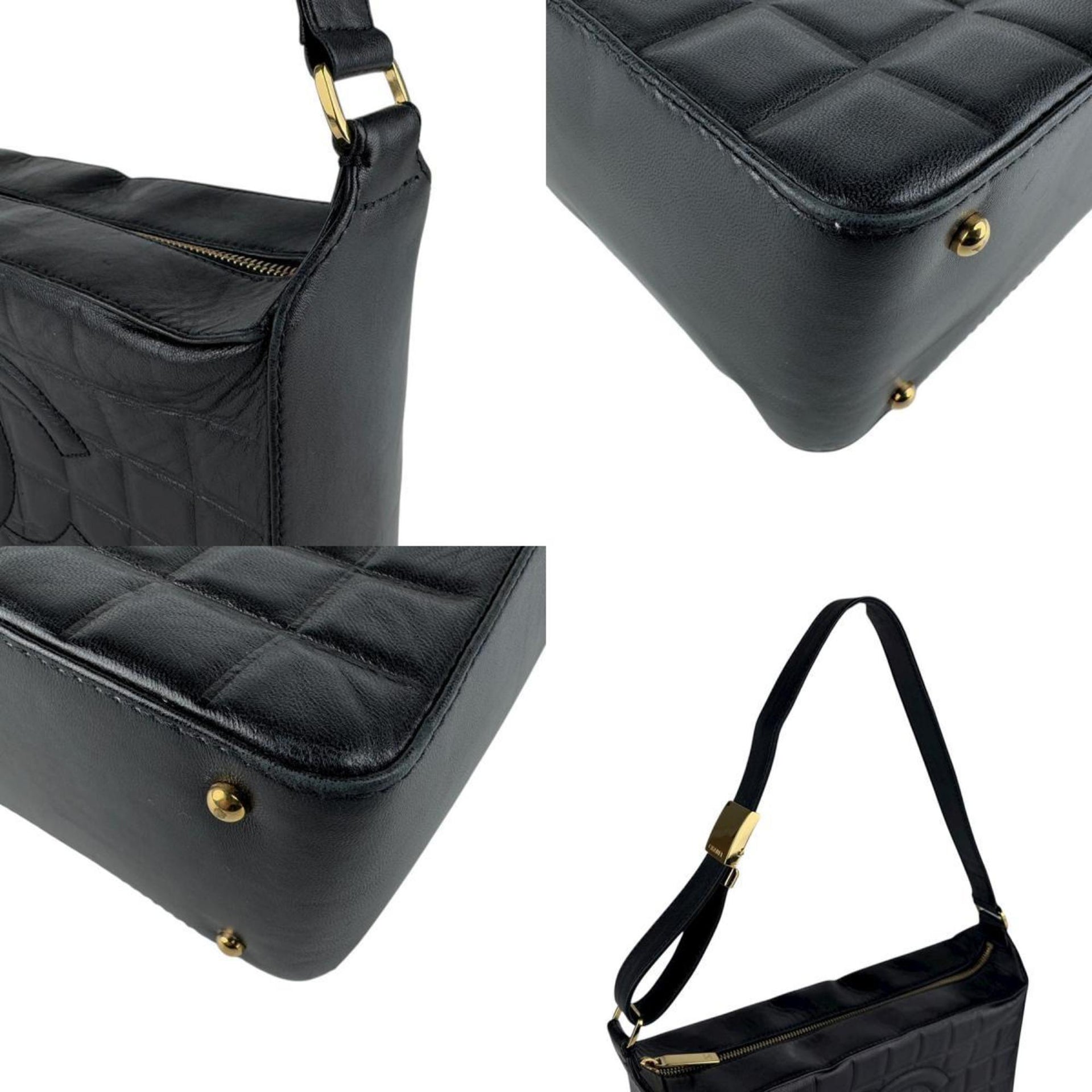 CHANEL Chocobar Shoulder Bag, Leather, Black and Gold, Women\'s, Z7582