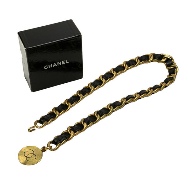 Chanel Coco Mark Belt, Gold and Black Plated Leather, Women\'s, CHANEL