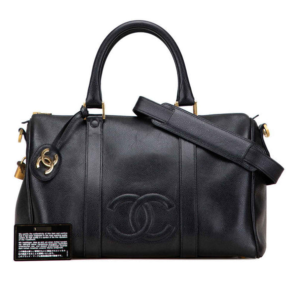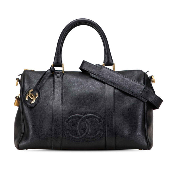 Chanel Coco Mark Boston Bag/Shoulder Bag, 2-Way, Black Caviar Skin, Women\'s, CHANEL