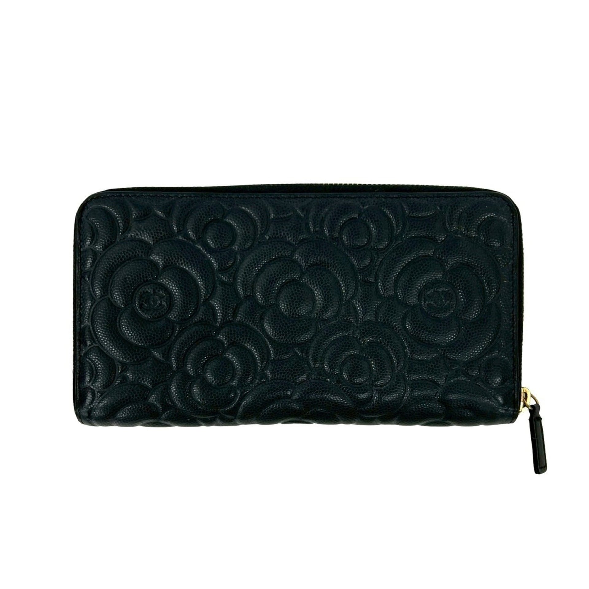 CHANEL Coco Mark Camellia Caviar Leather Long Wallet in Black 39158
