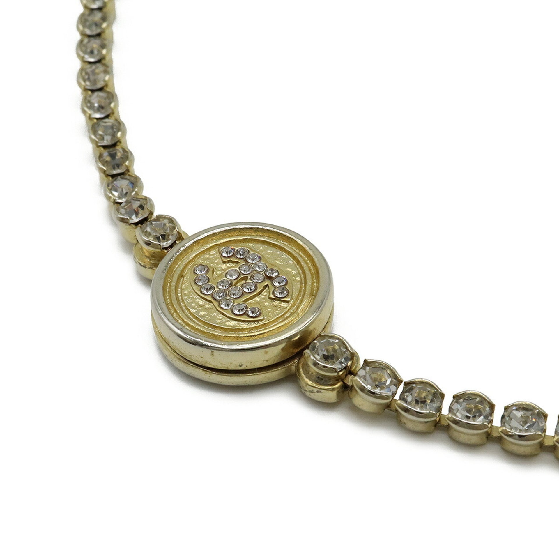CHANEL Coco Mark Choker Necklace Pendant with GP Rhinestones in Gold, A21 S