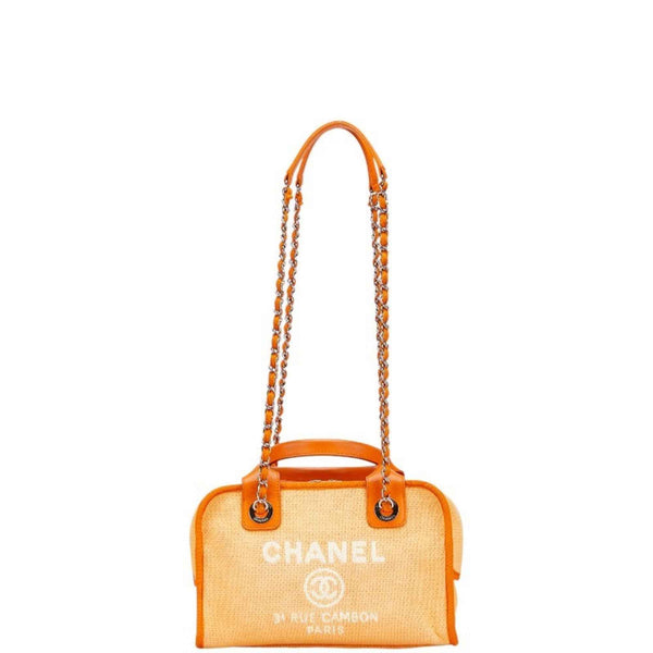 CHANEL Coco Mark Deauville Chain Handbag/Shoulder Bag, 2-Way, Orange Canvas and Leather, Women\'s