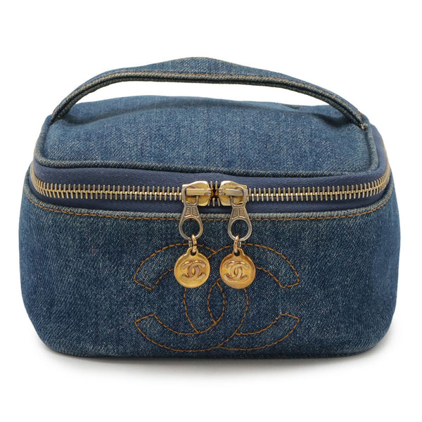 CHANEL Coco Mark Denim Vanity Bag Handbag Blue A07058