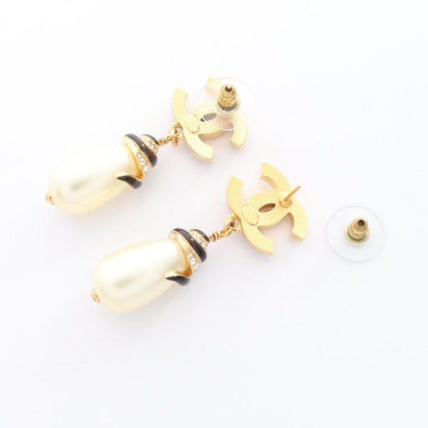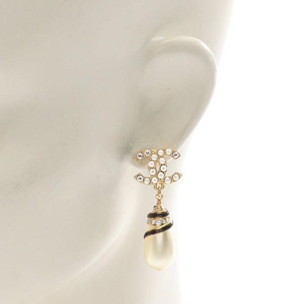 CHANEL Coco Mark Earrings with Gold Plated Rhinestones for Women, Available in Gold, White, and Black