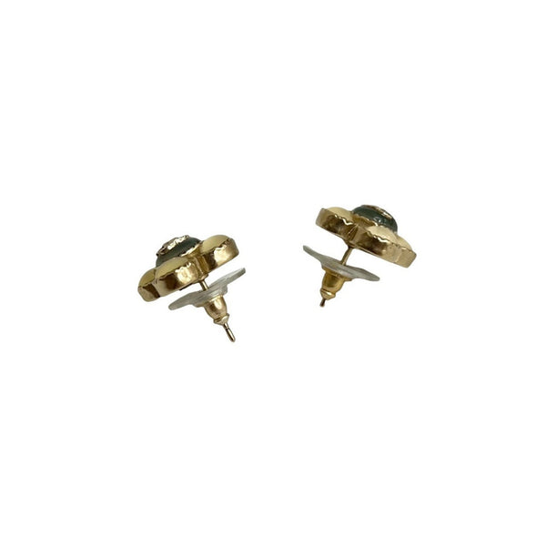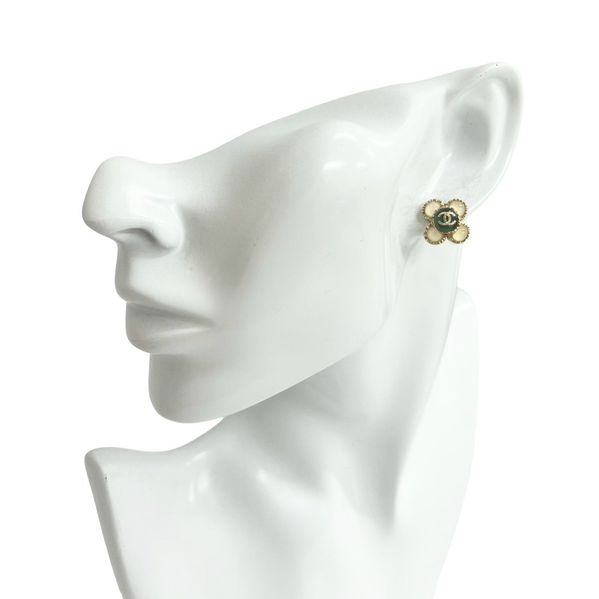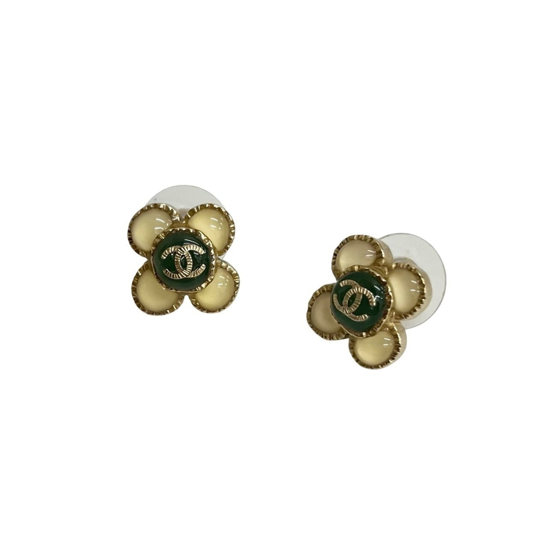 CHANEL Coco Mark Flower Motif GP Earrings, Women\'s, Gold/Green, 10261