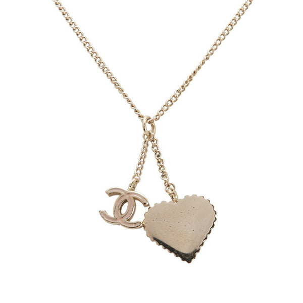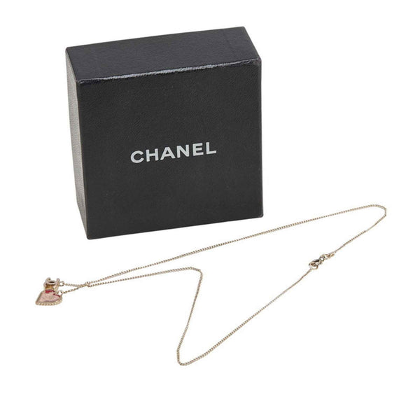 Chanel Coco Mark Heart Motif Necklace, Gold and Pink Plated, Women\'s