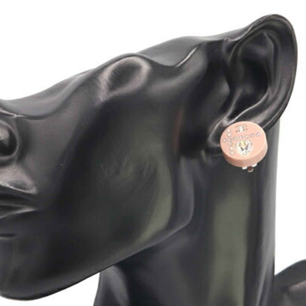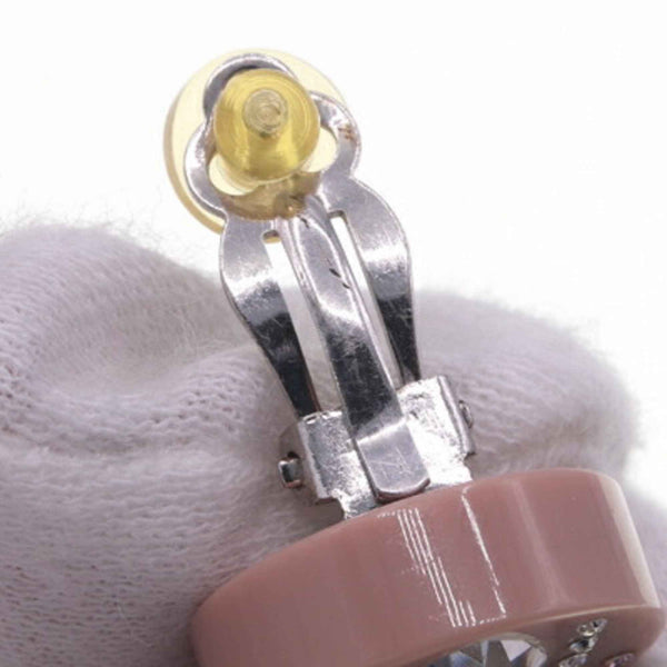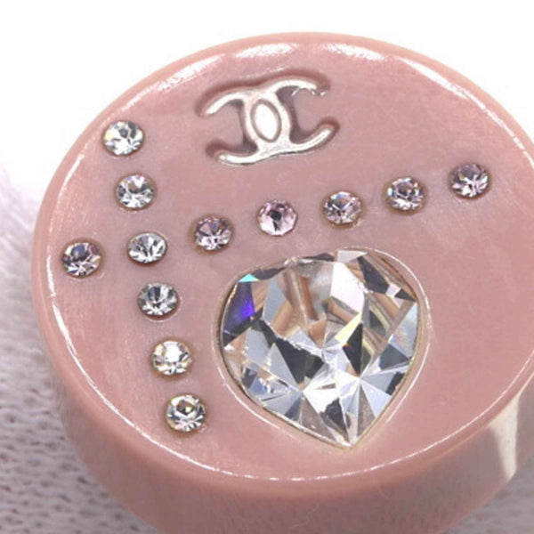 Chanel Coco Mark Heart Round Earrings, Pink Plastic with Rhinestones, 04A, 2004 Model, Mark, Women\'s, CHANEL