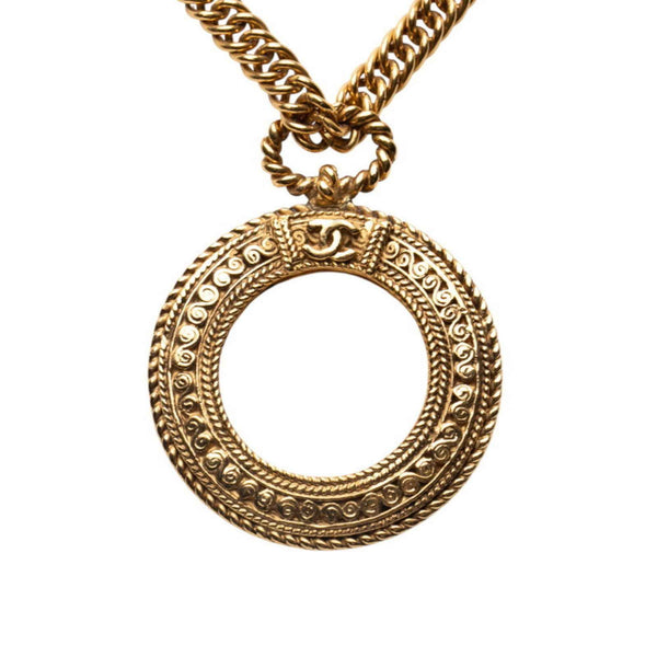 Chanel Coco Mark Magnifying Glass Necklace, Gold Plated, Women\'s, CHANEL