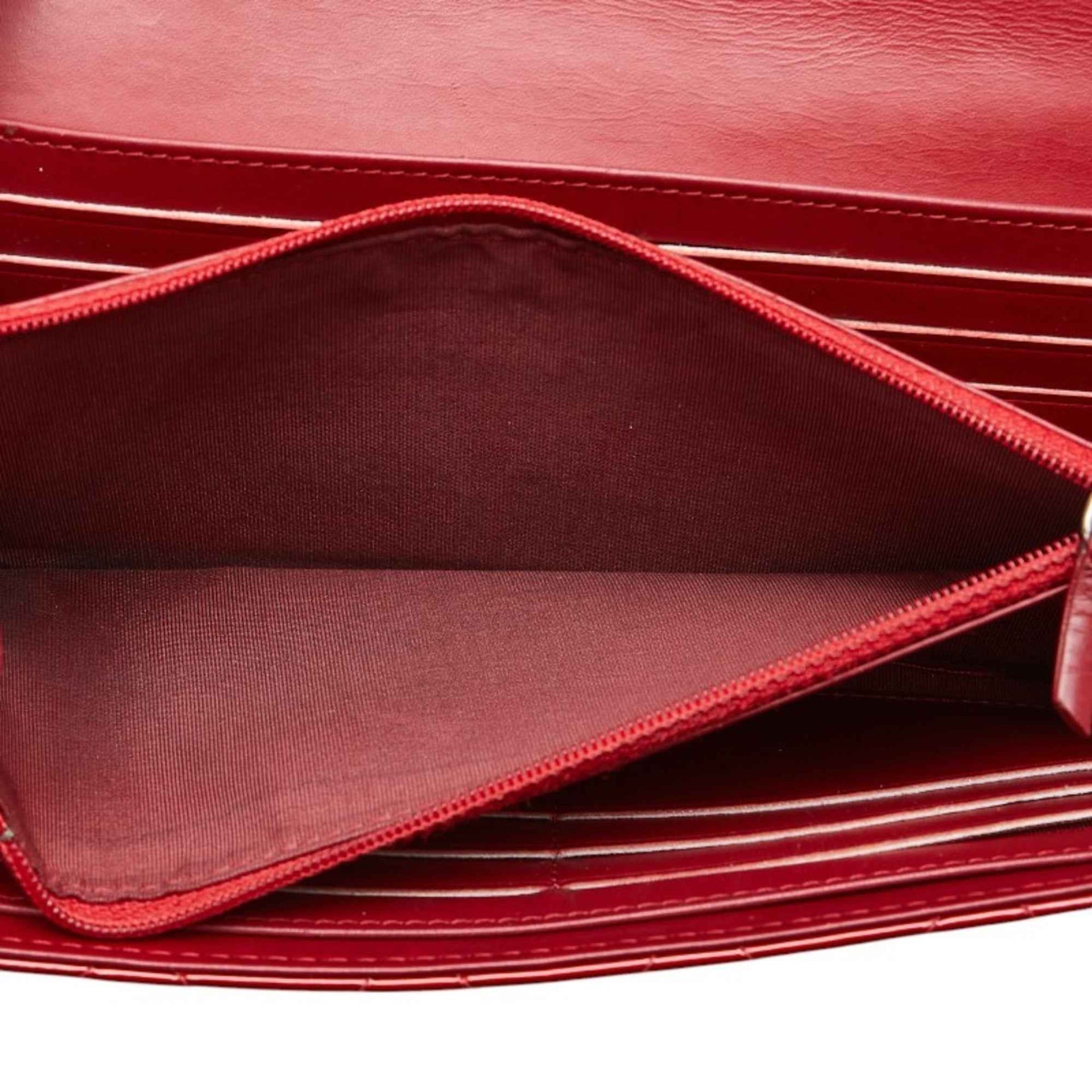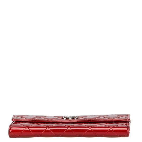 CHANEL Coco Mark Matelasse Long Wallet Red Patent Leather Women\'s