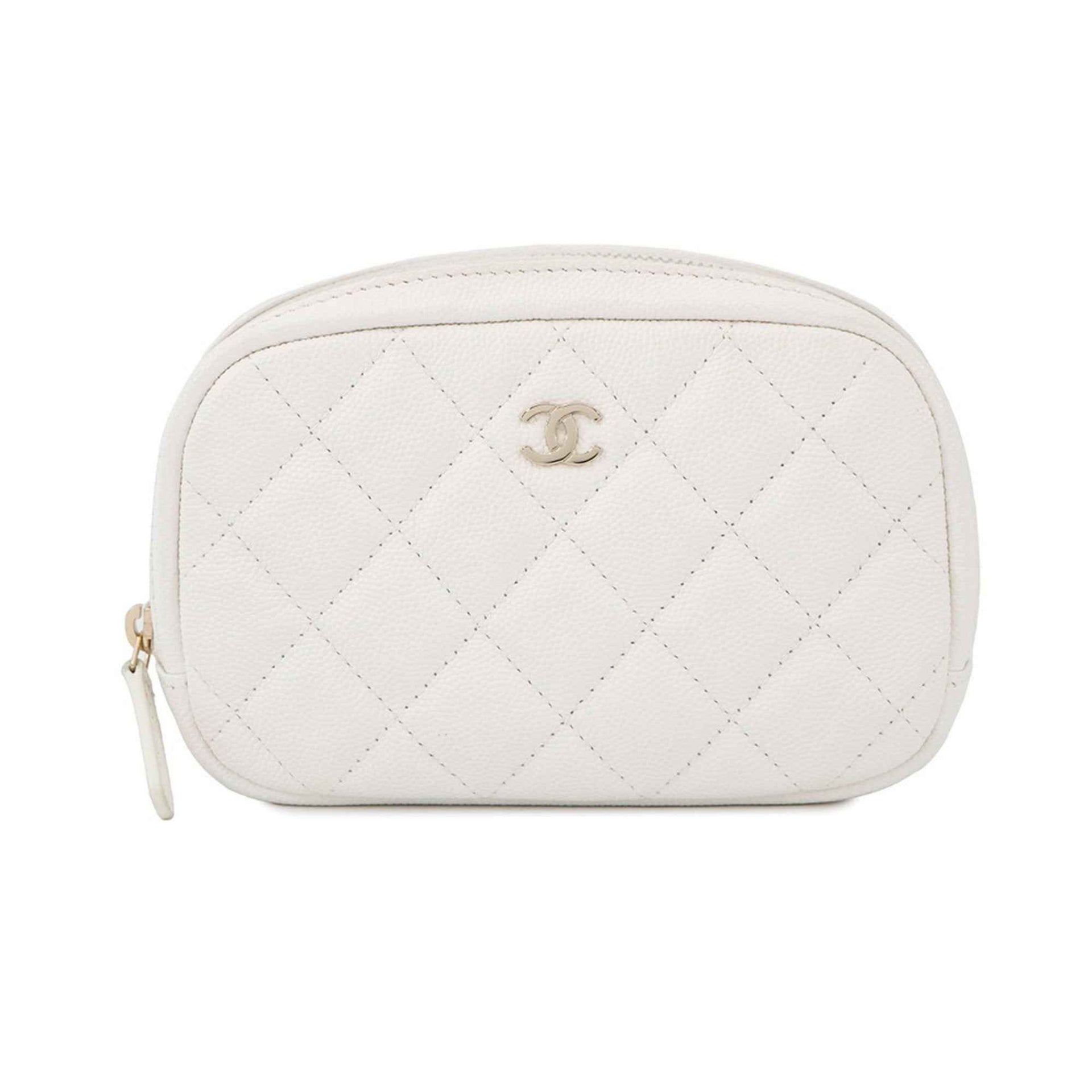 Chanel Coco Mark Matelasse Pouch A80909 CHANEL White