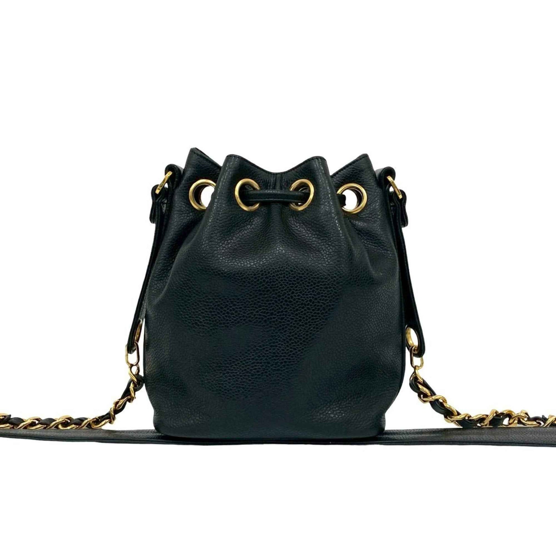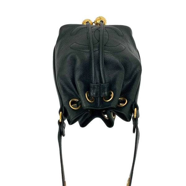 CHANEL Coco Mark Matte Caviar Leather Mini Shoulder Bag/Drawstring Bag, Black, 17333