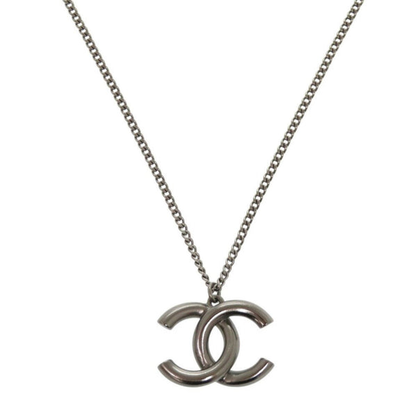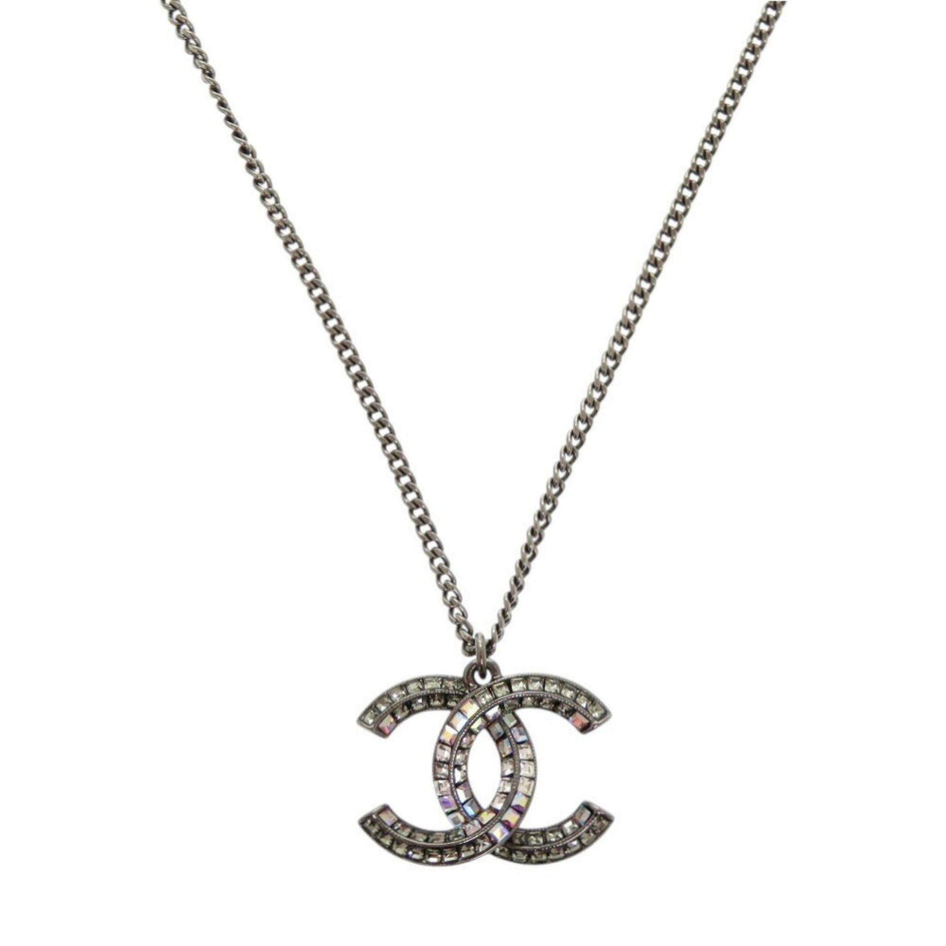 Chanel Coco Mark Metal Rhinestone Gunmetal Necklace 0076CHANEL