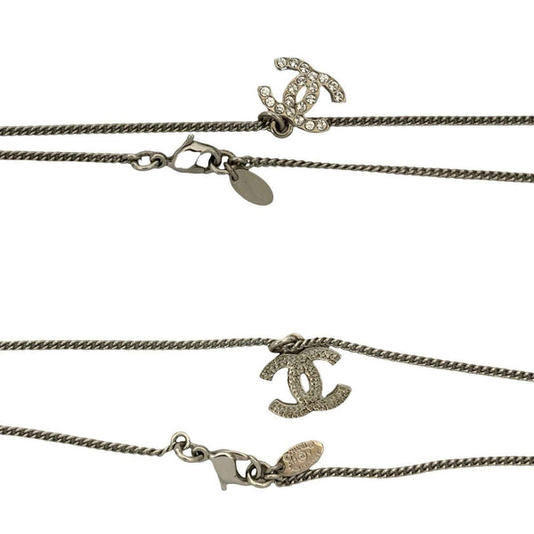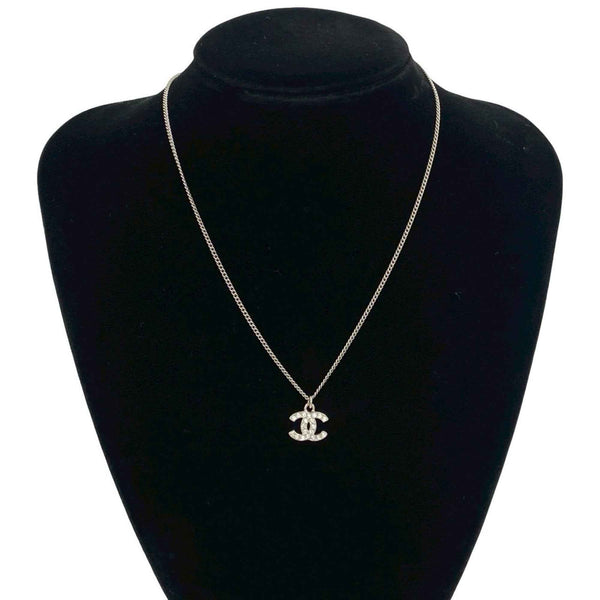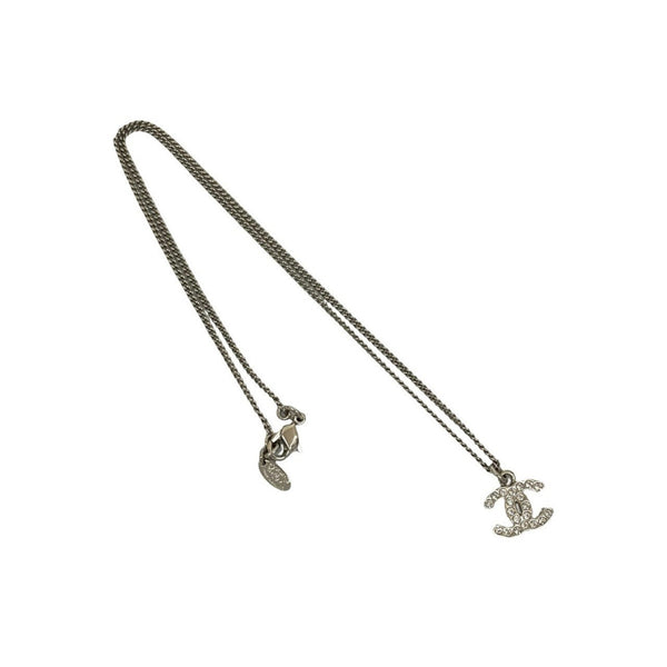 CHANEL Coco Mark Metal Rhinestone Necklace Pendant Silver 97650