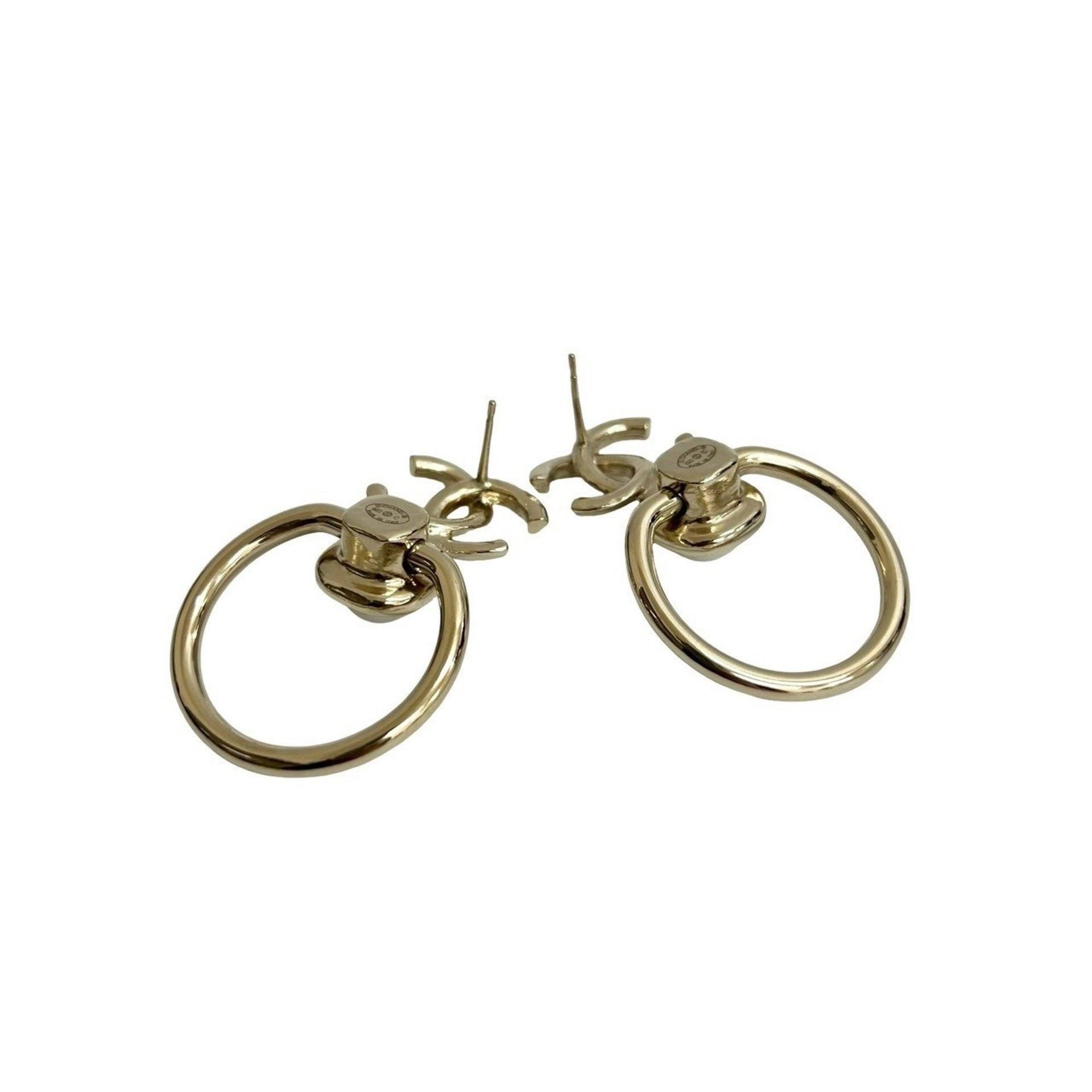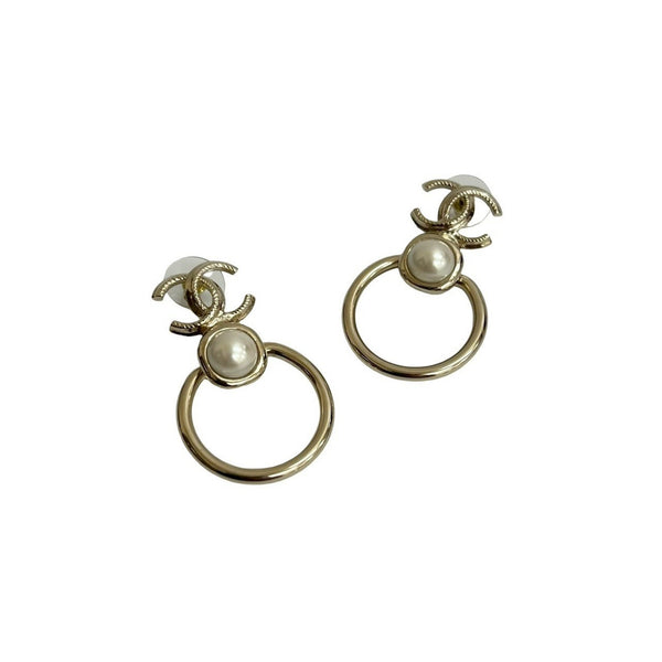 CHANEL Coco Mark Motif GP Faux Pearl Hoop Earrings, Gold, 34158