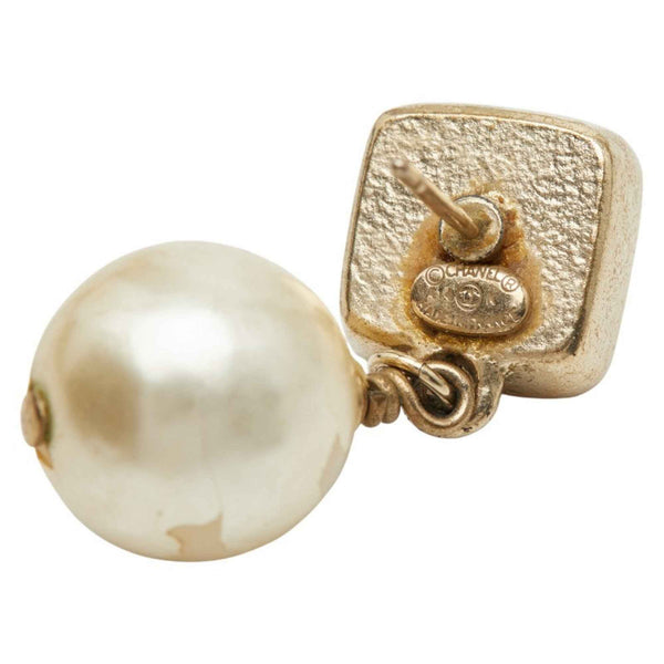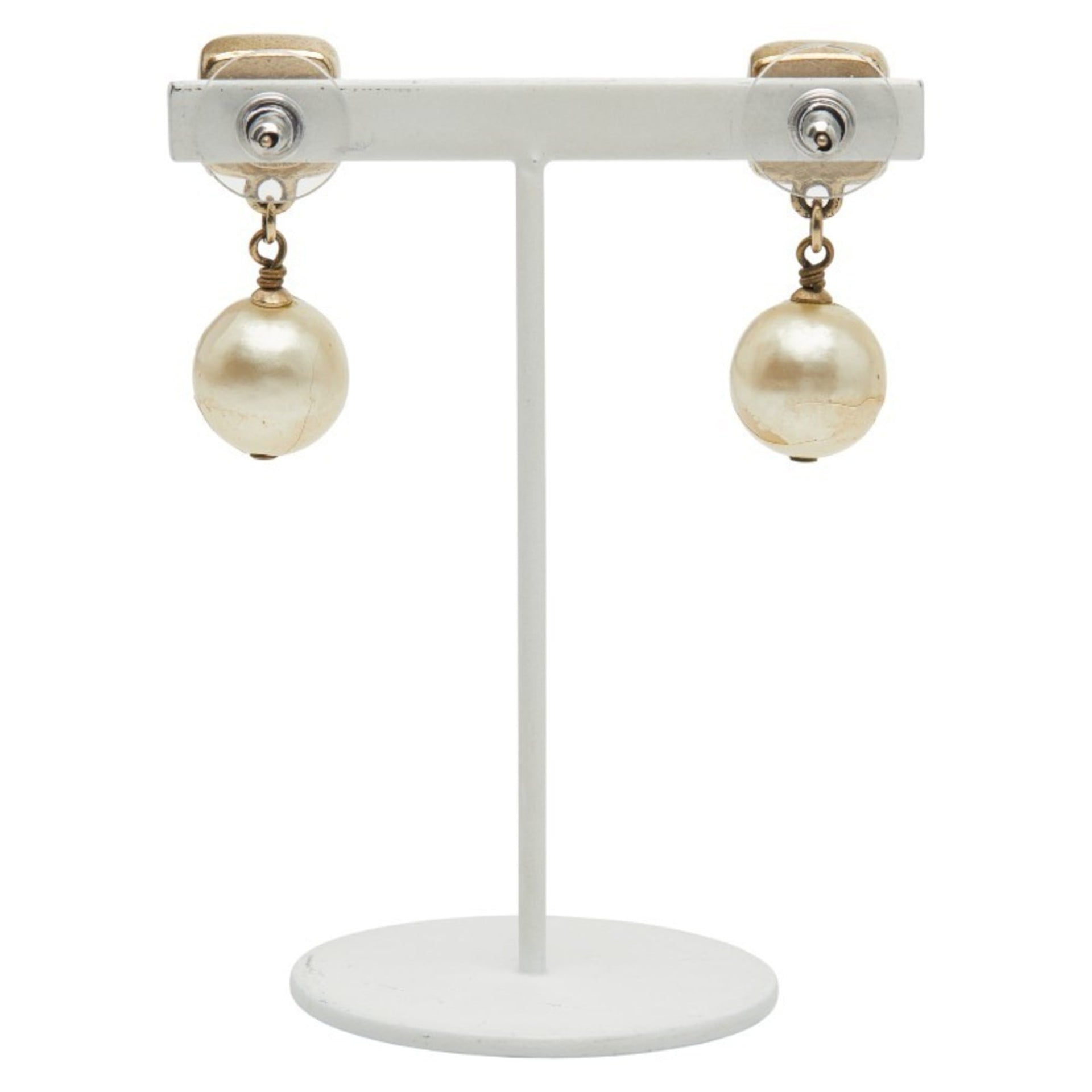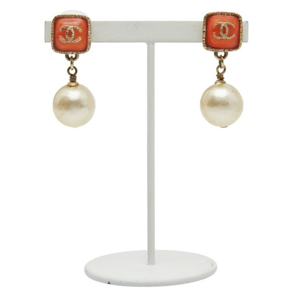 Chanel Coco Mark Pearl Earrings, Gold and Orange Plated, Faux Pearl, Women\'s, CHANEL