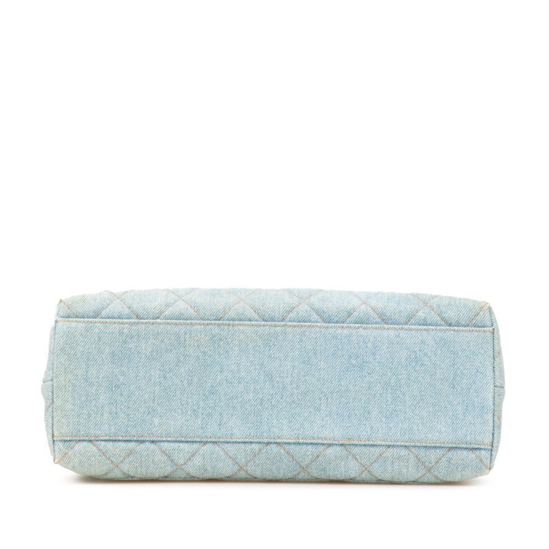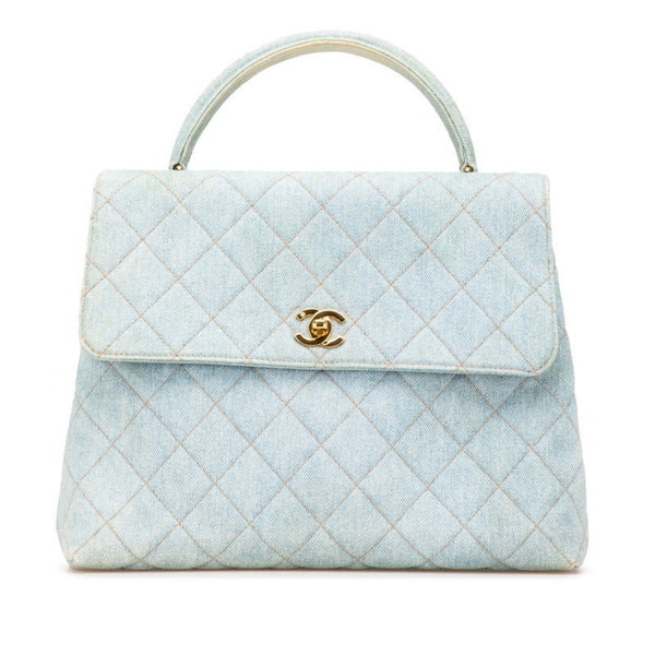 Chanel Coco Mark Quilted Handbag with Top Handles, Light Blue Denim, Women\'s