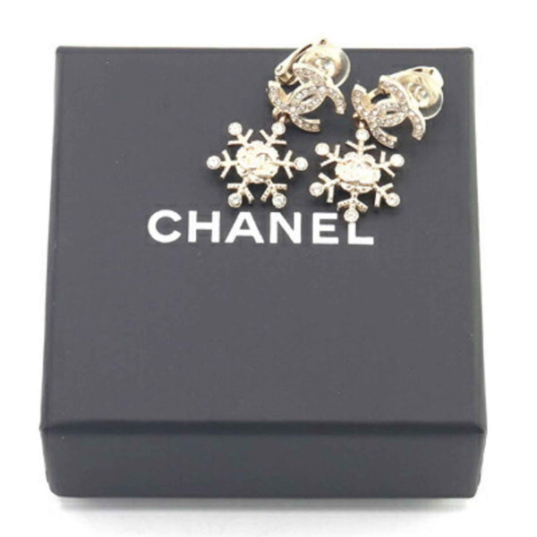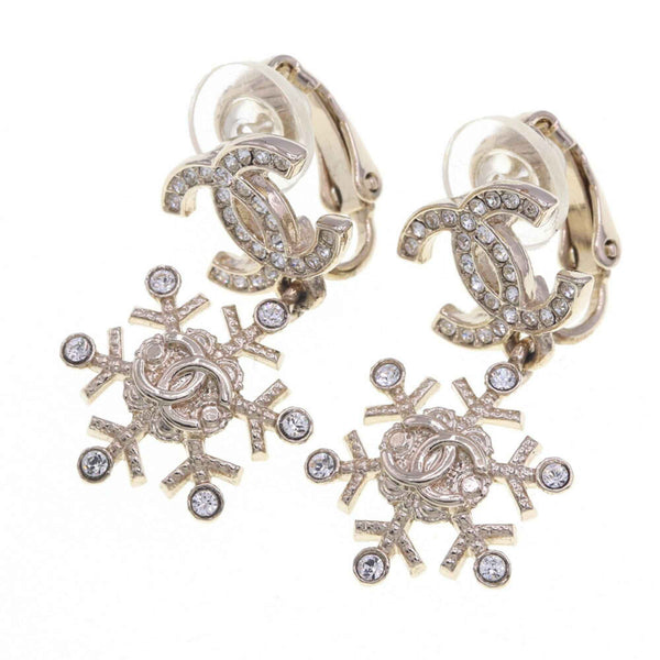 CHANEL Coco Mark Snowflake Earrings in Matte Gold Metal with Rhinestones, A19B, 2019 Model, Women\'s, Design