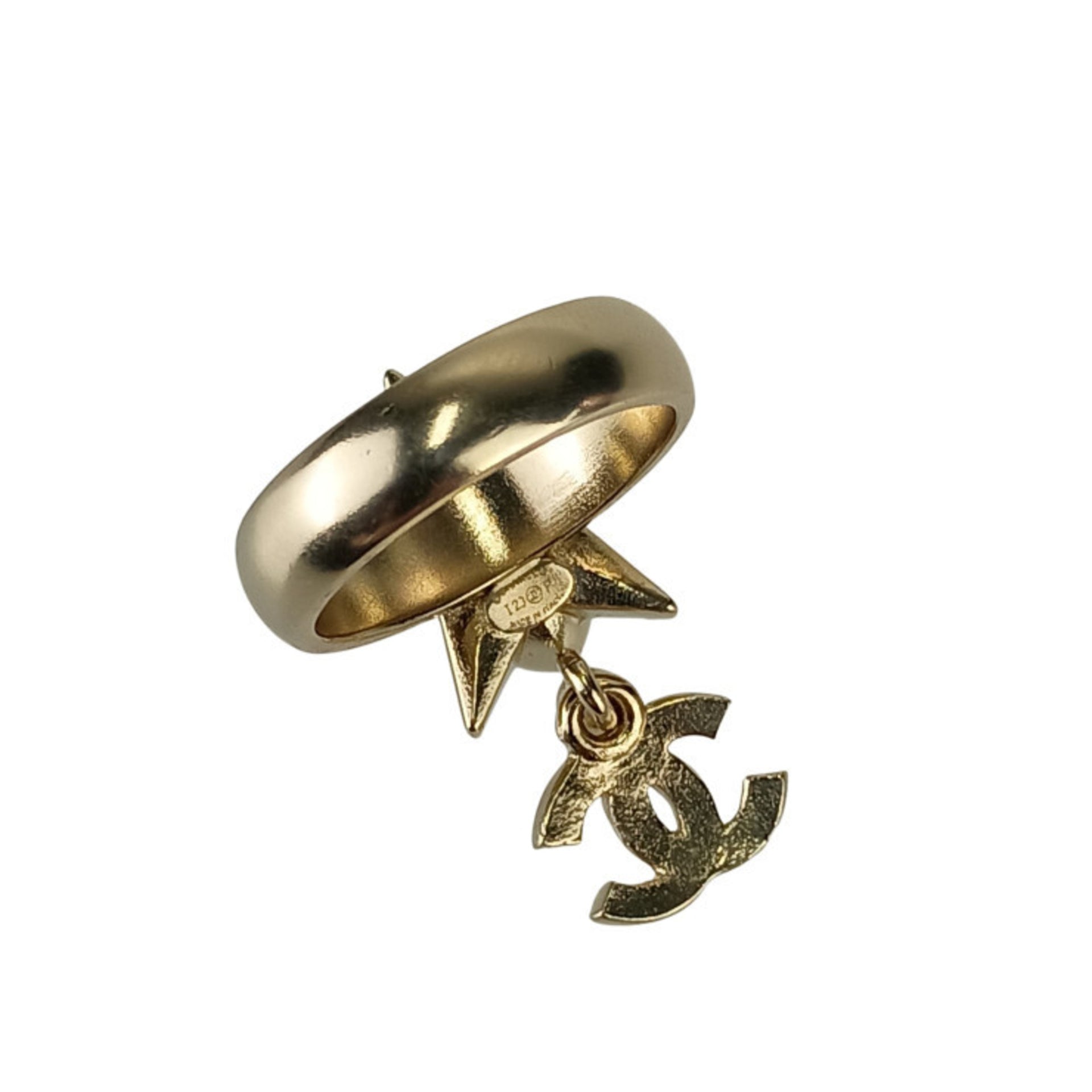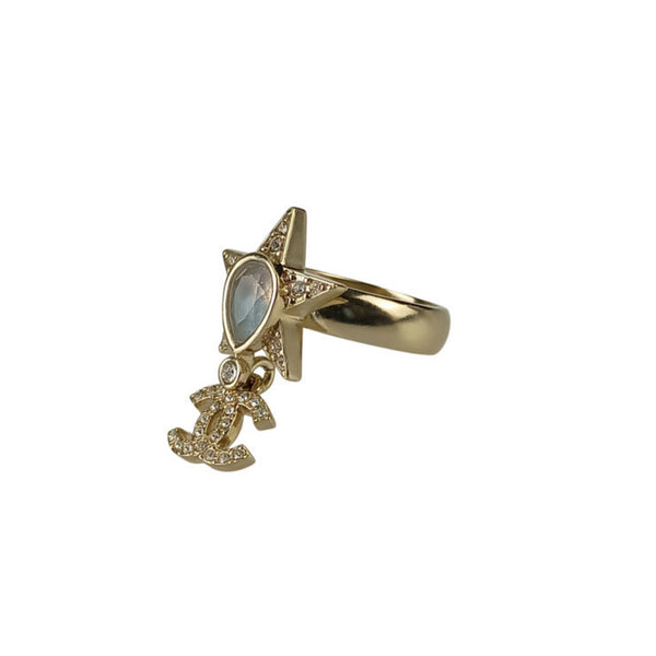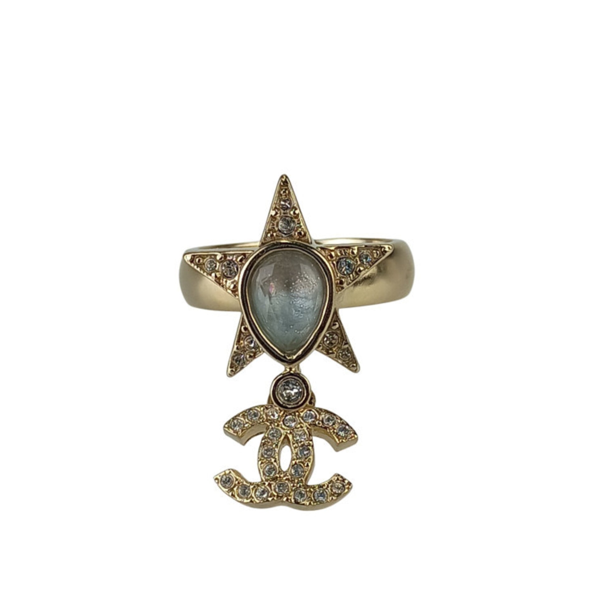 CHANEL Coco Mark Star Ring, Gold Metal with Rhinestones, Women\'s, I23 P
