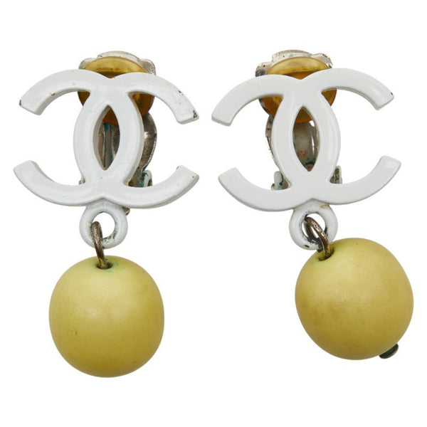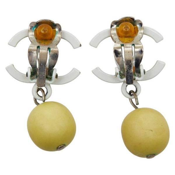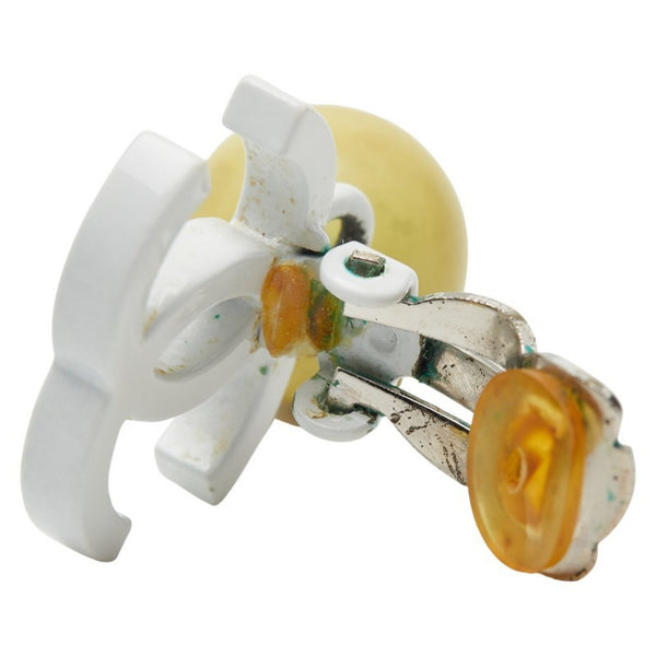 Chanel Coco Mark Swing Earrings, White and Yellow, Plastic, Women\'s, CHANEL