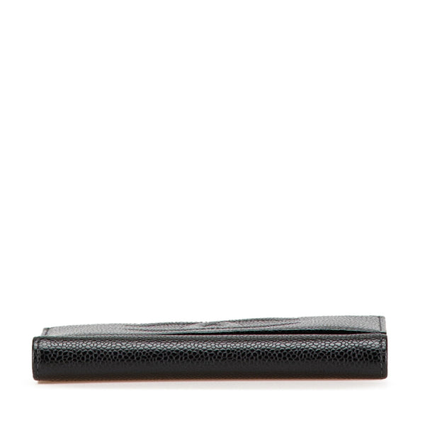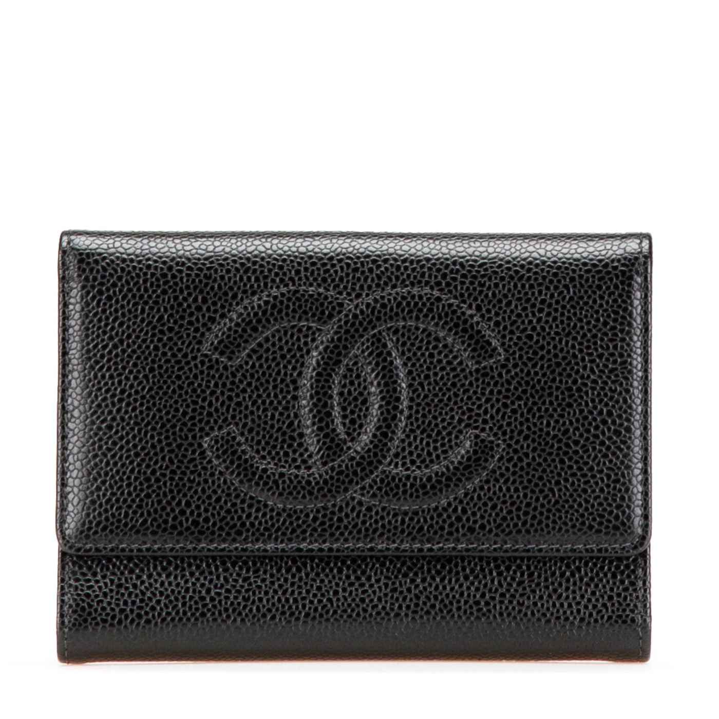 CHANEL Coco Mark Tri-fold Wallet in Black Caviar Leather for Women