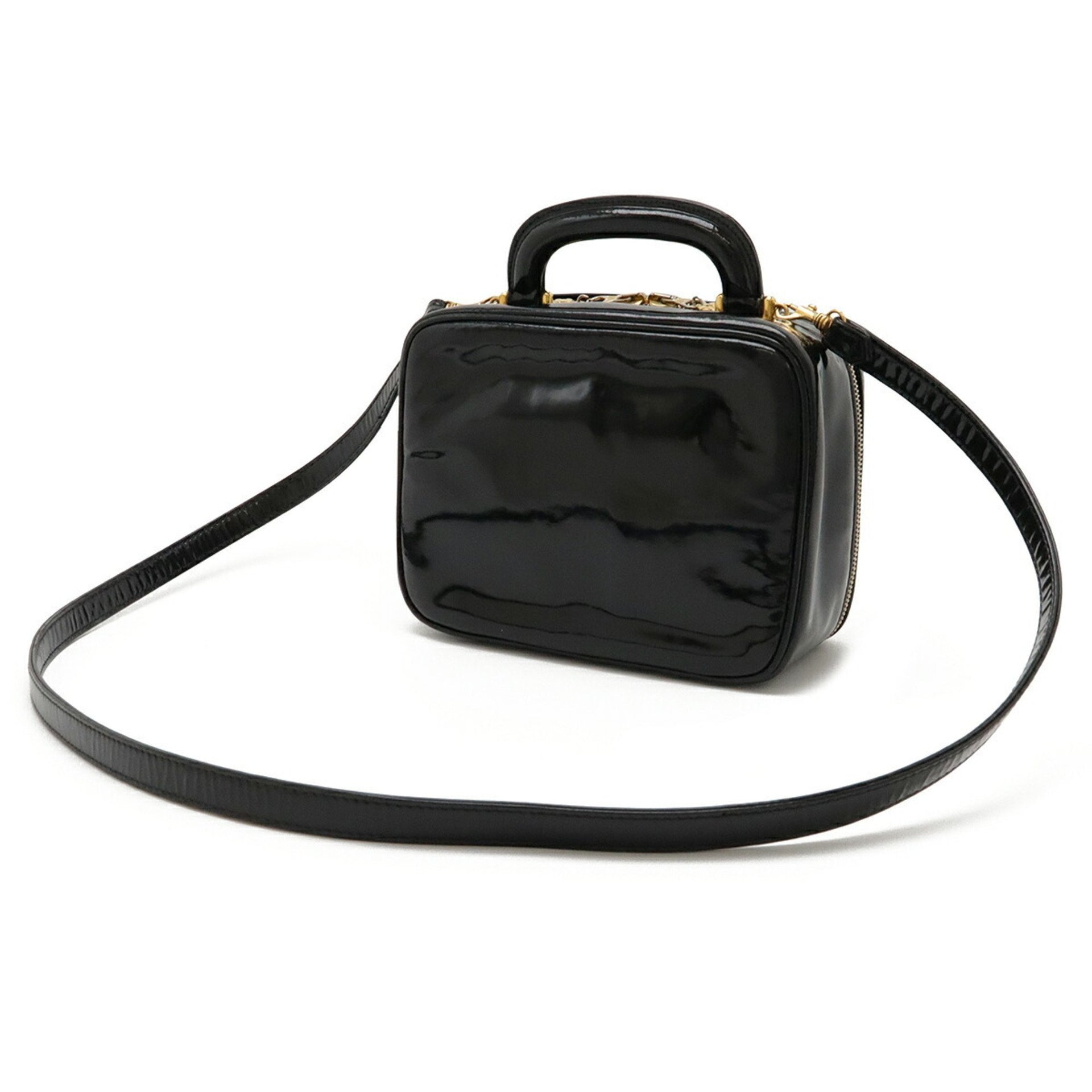 CHANEL Coco Mark Vanity Bag, Handbag, Pouch, Shoulder Enamel, Patent Leather, Black, A07060