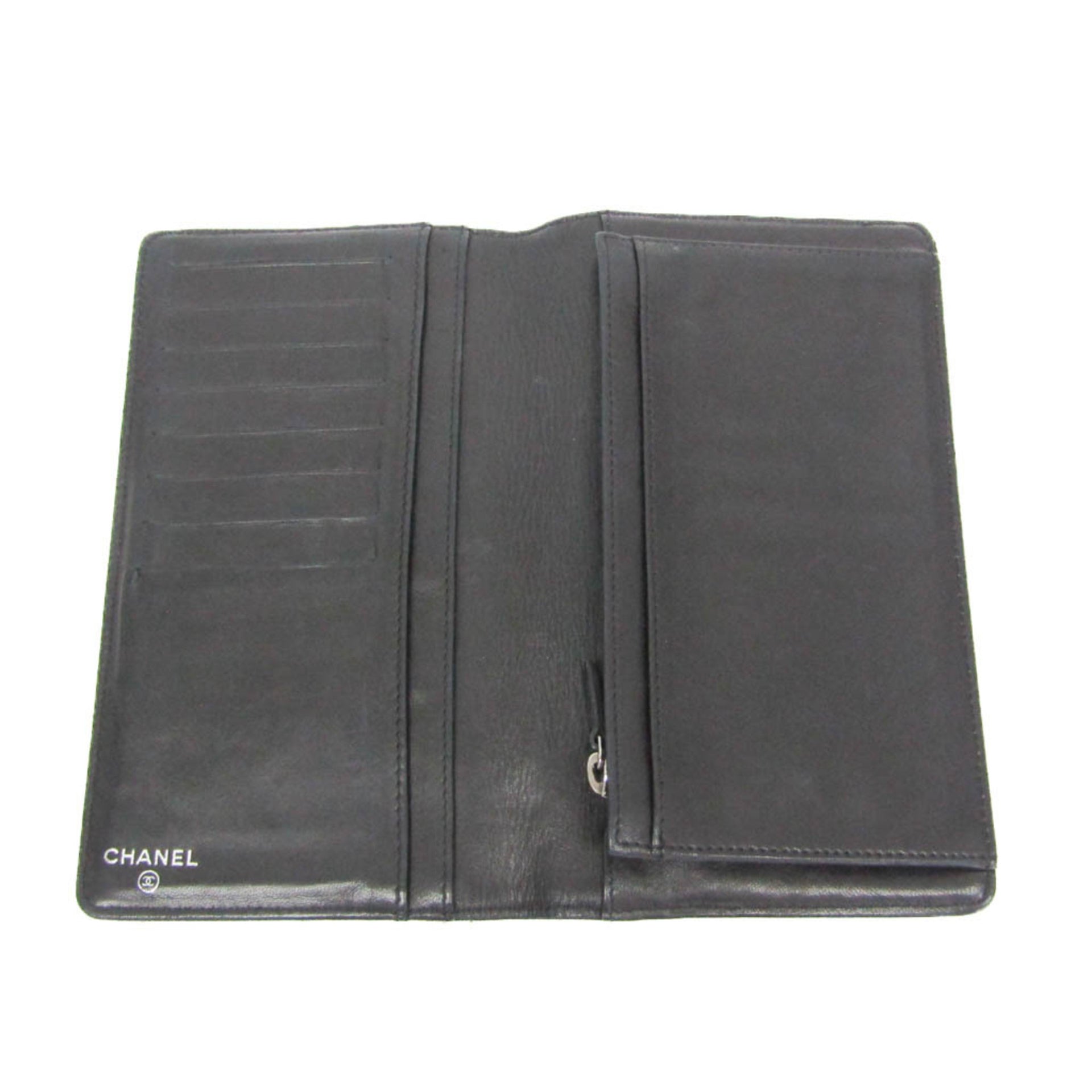 Chanel Coco Mark Women\'s Lambskin Long Wallet (bi-fold) Black