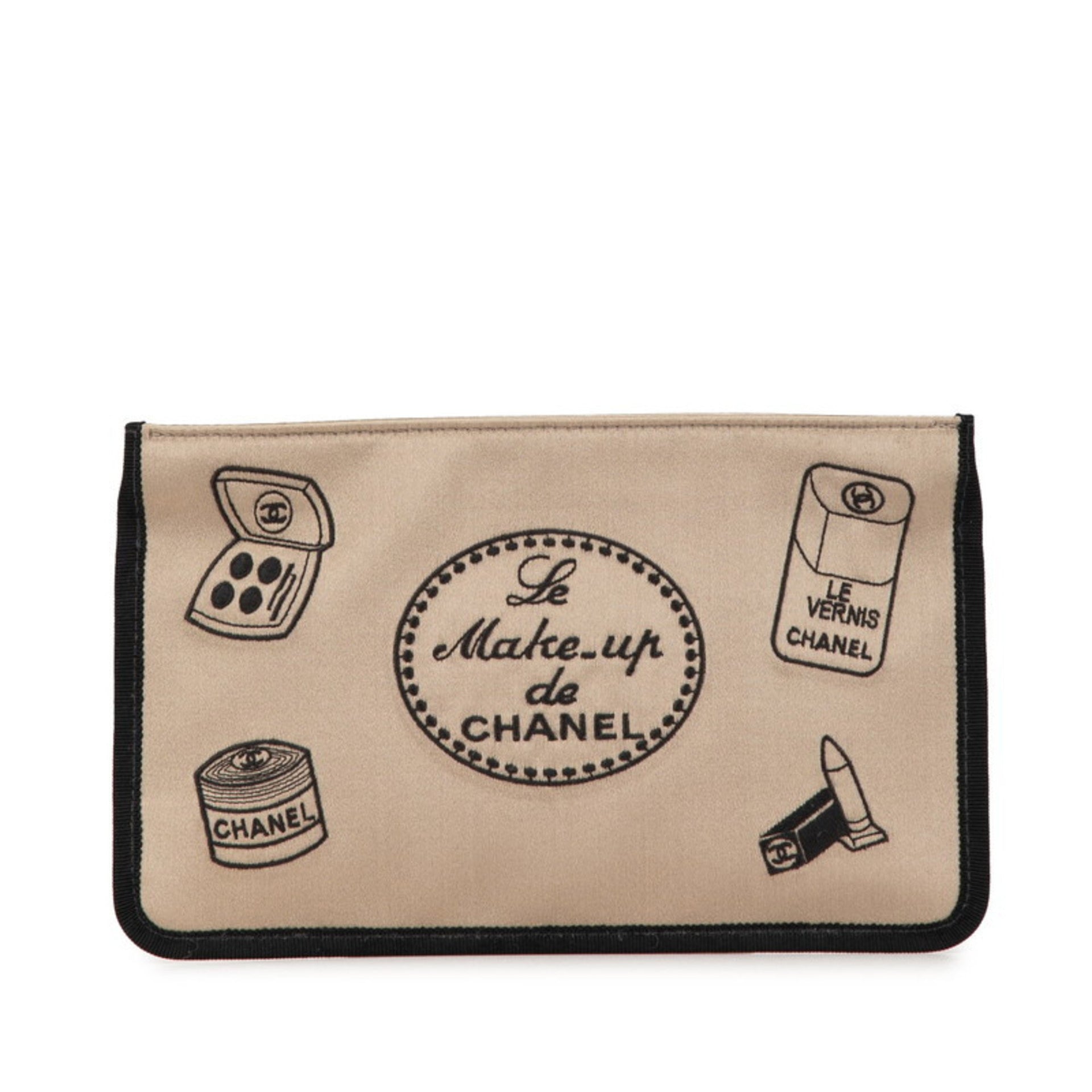 CHANEL Cosmetic Pattern Pouch, Beige Satin, Women\'s
