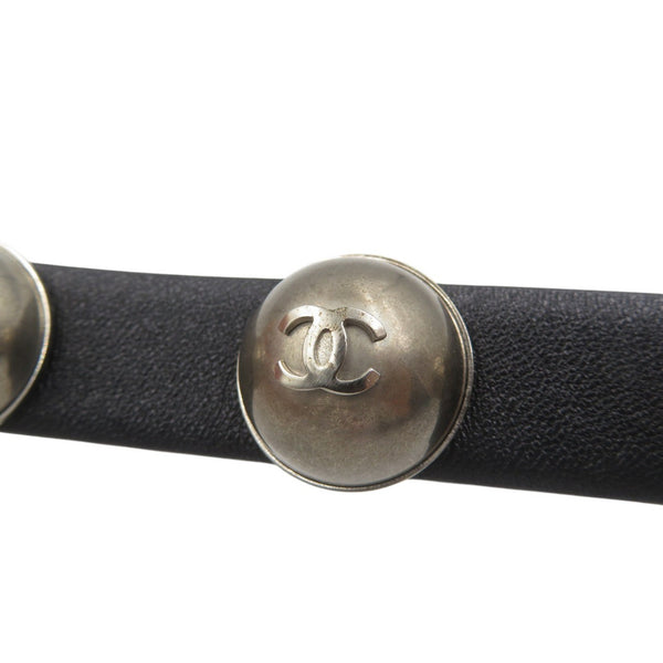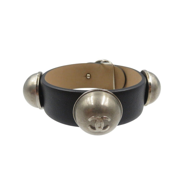 Chanel CUIR VERITABLE Medium Leather, Metal, Black and Silver Bracelet 0055CHANEL