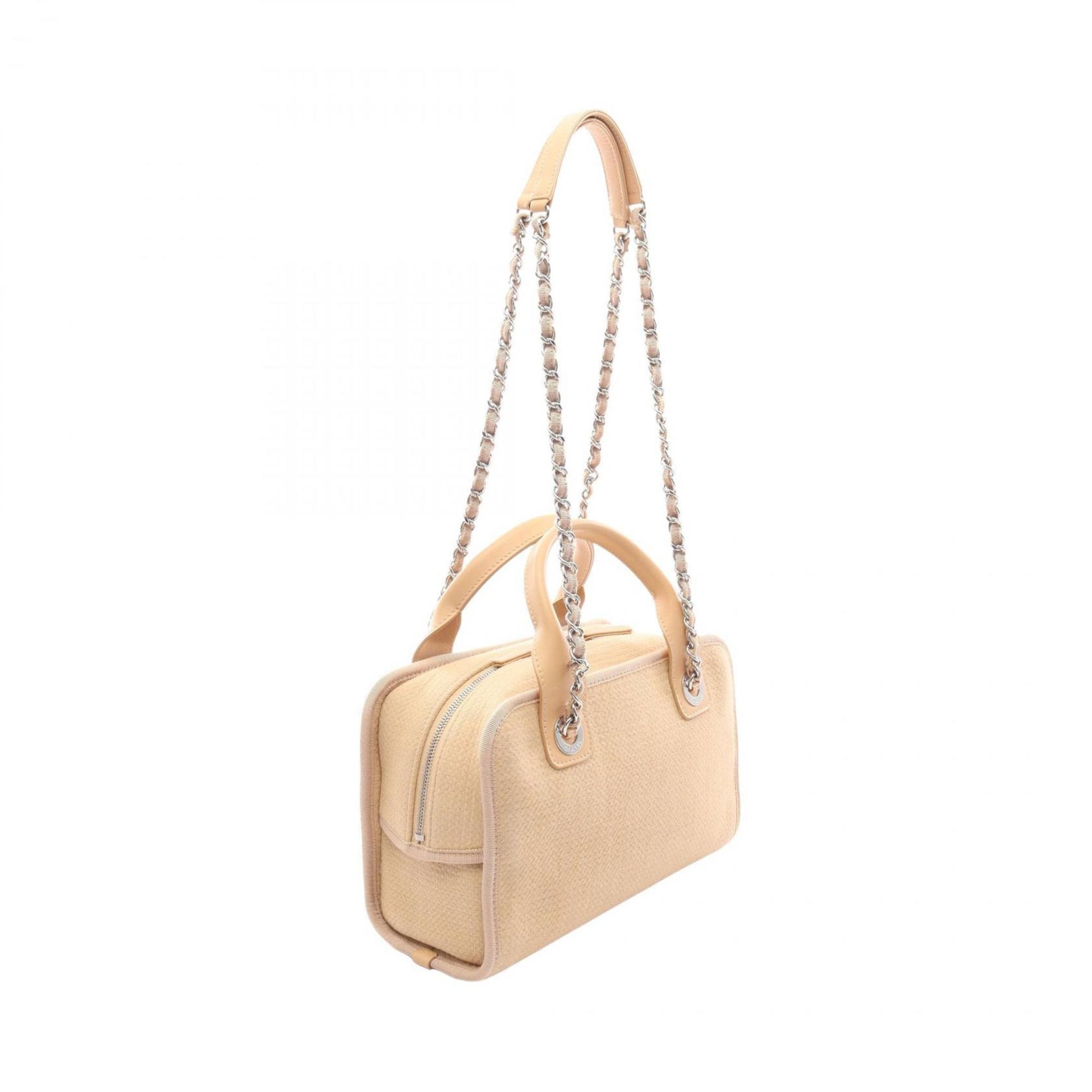CHANEL Deauville Bowling Shoulder Bag, Canvas and Leather, Women\'s, Beige, A92750