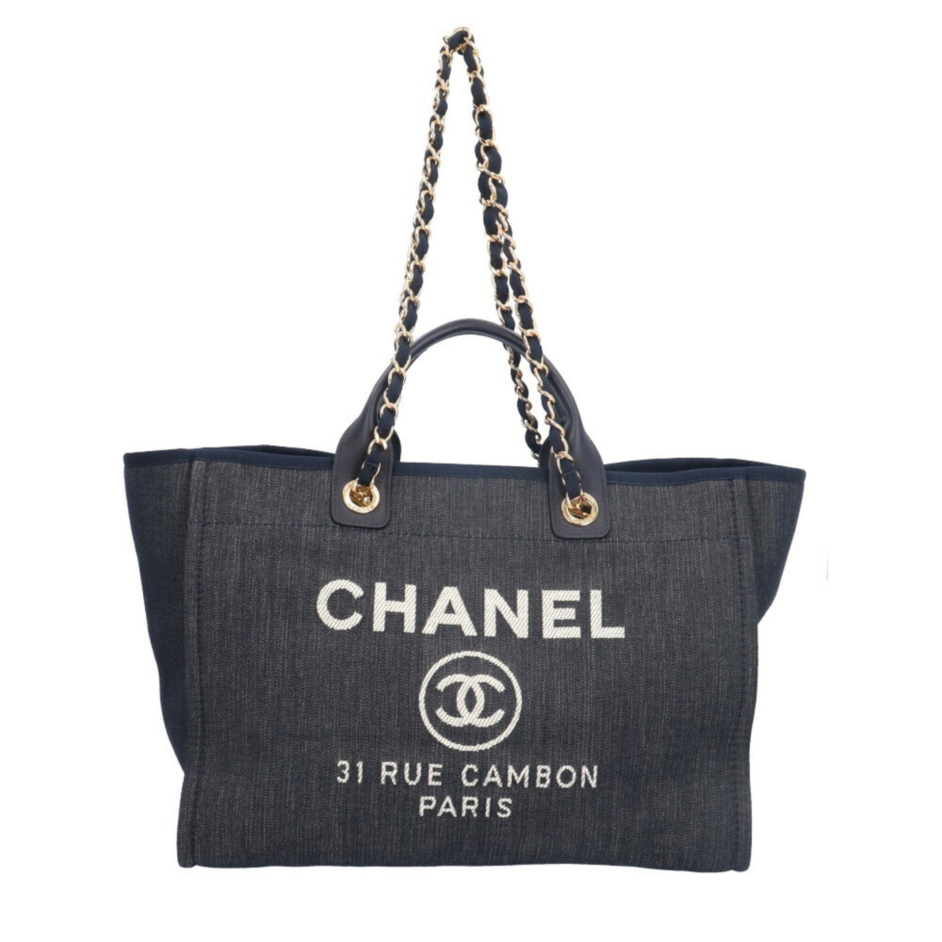CHANEL Deauville GM Shoulder Bag, Chanel Canvas, A66941, Navy, Women\'s, Chain