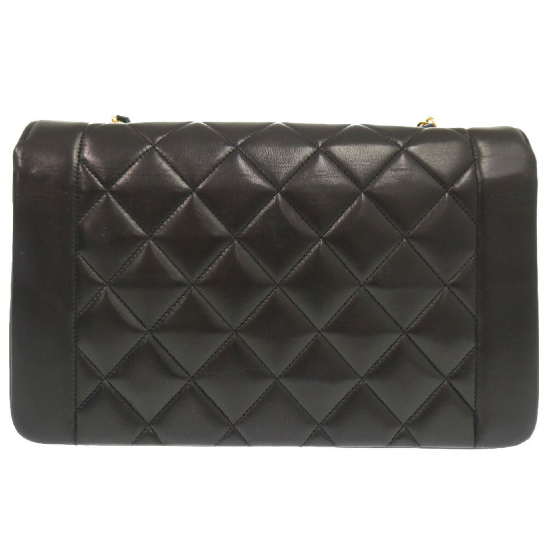 CHANEL DIANA 25 MEDIUM LAMBSKIN BLACK MATTELASSE SHOULDER BAG COCO MARK 0091