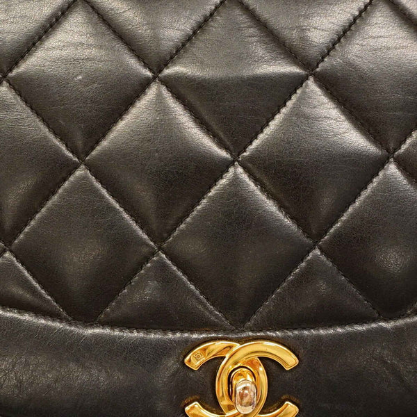 Chanel Diana Matelasse Chain Shoulder Bag in Lambskin, Black, Women\'s