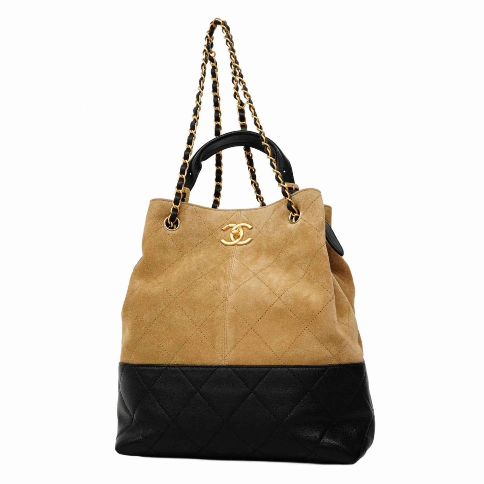 Chanel handbag, chain shoulder bag, Métiers d\'Art, suede and calf leather, beige black, 2-way bag for women