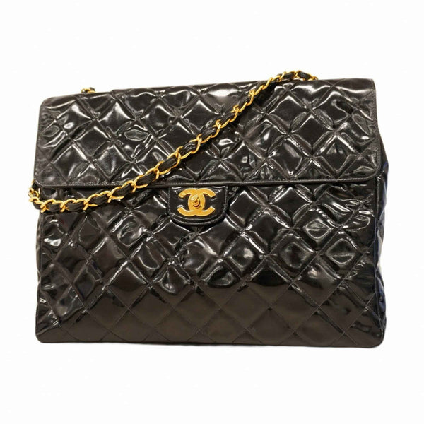Chanel Large Matelasse Chain Shoulder Bag in Patent Leather, Black, Women\'s