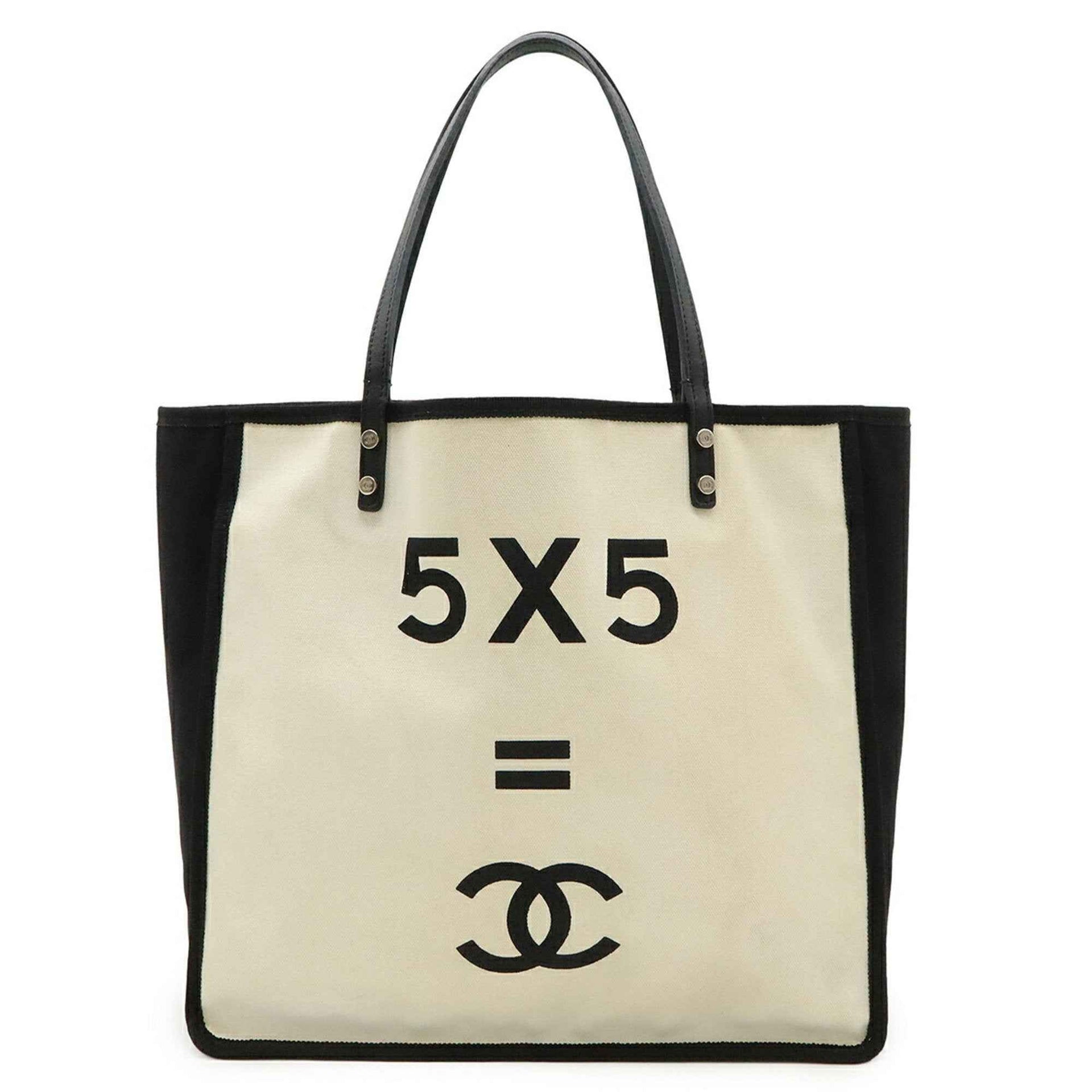 CHANEL \"Let\'s Lemon\" Straight Tote Shoulder Bag, Canvas, Leather, Ivory, Black, Charm Missing