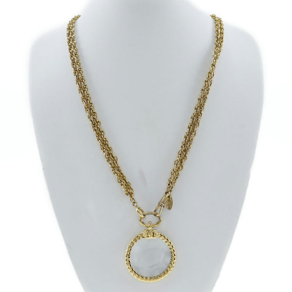 CHANEL Loupe Necklace Double Chain Vintage Gold Plated Made in France Ladies