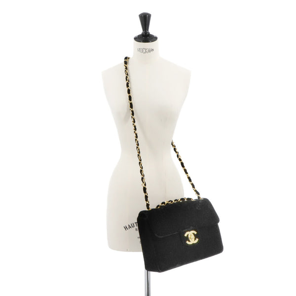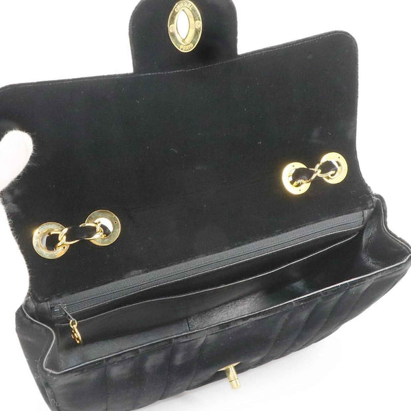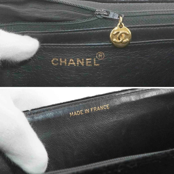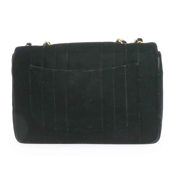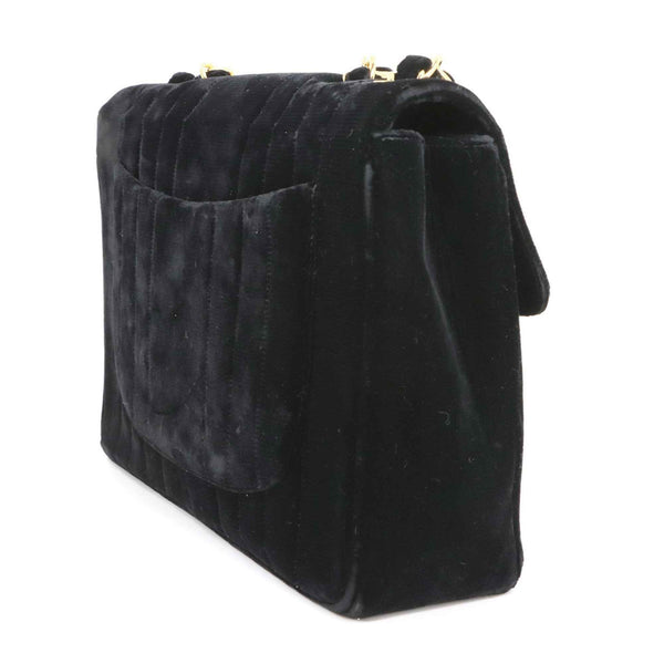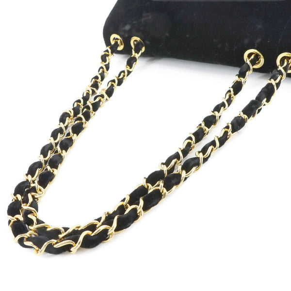CHANEL Mademoiselle Chain Shoulder Bag in Black Velvet with Gold Hardware