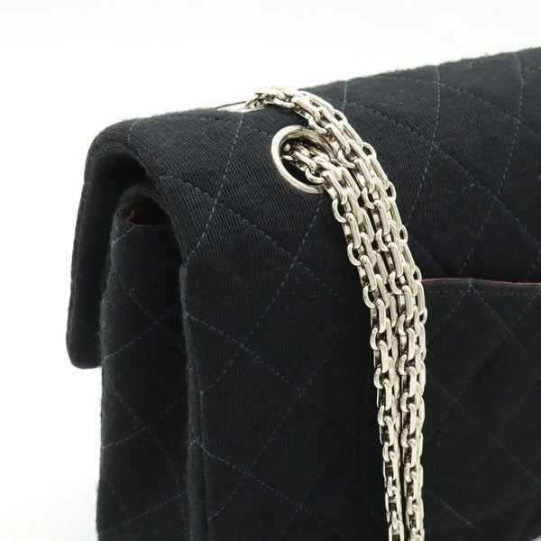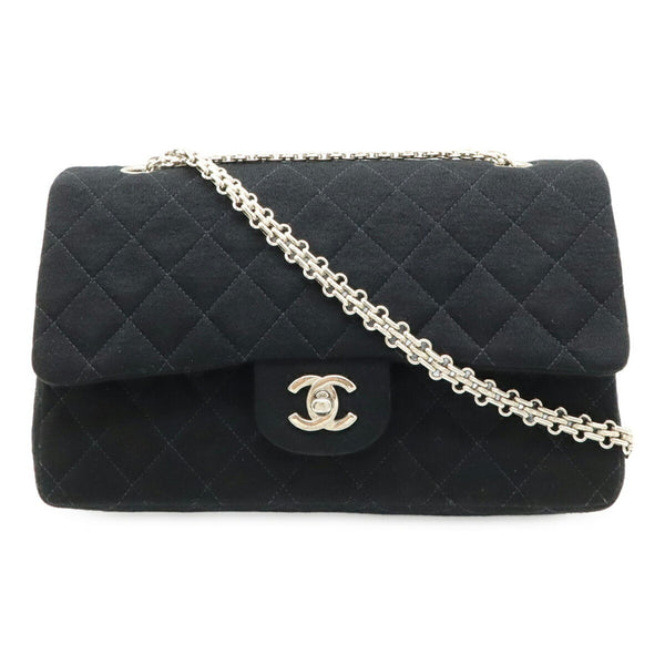 CHANEL Matelasse 25 Coco Mark Double Flap Chain Shoulder Bag, Black Cotton Jersey, A01112