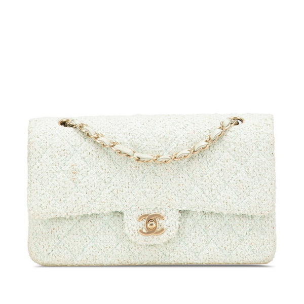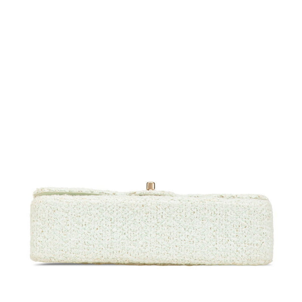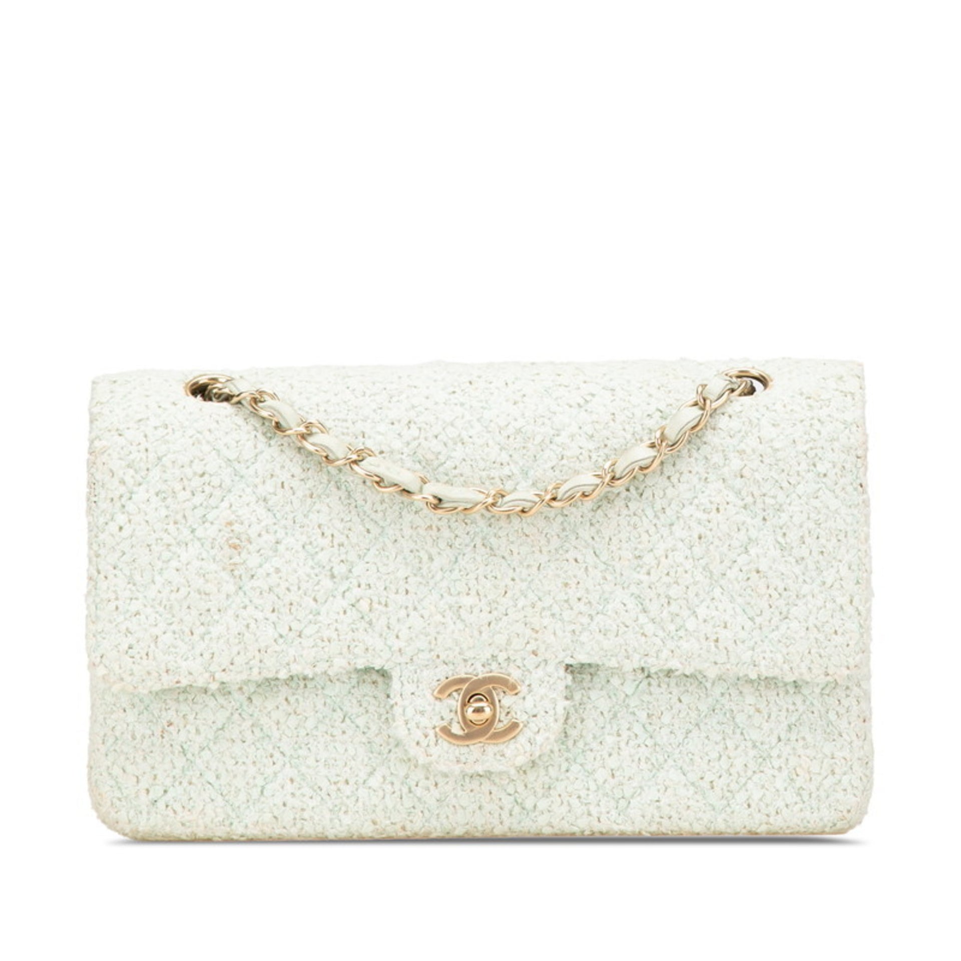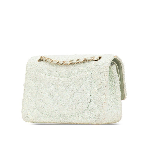 Chanel Matelasse 25 Coco Mark Double Flap Chain Shoulder Bag in Green Mint Tweed and Leather for Women