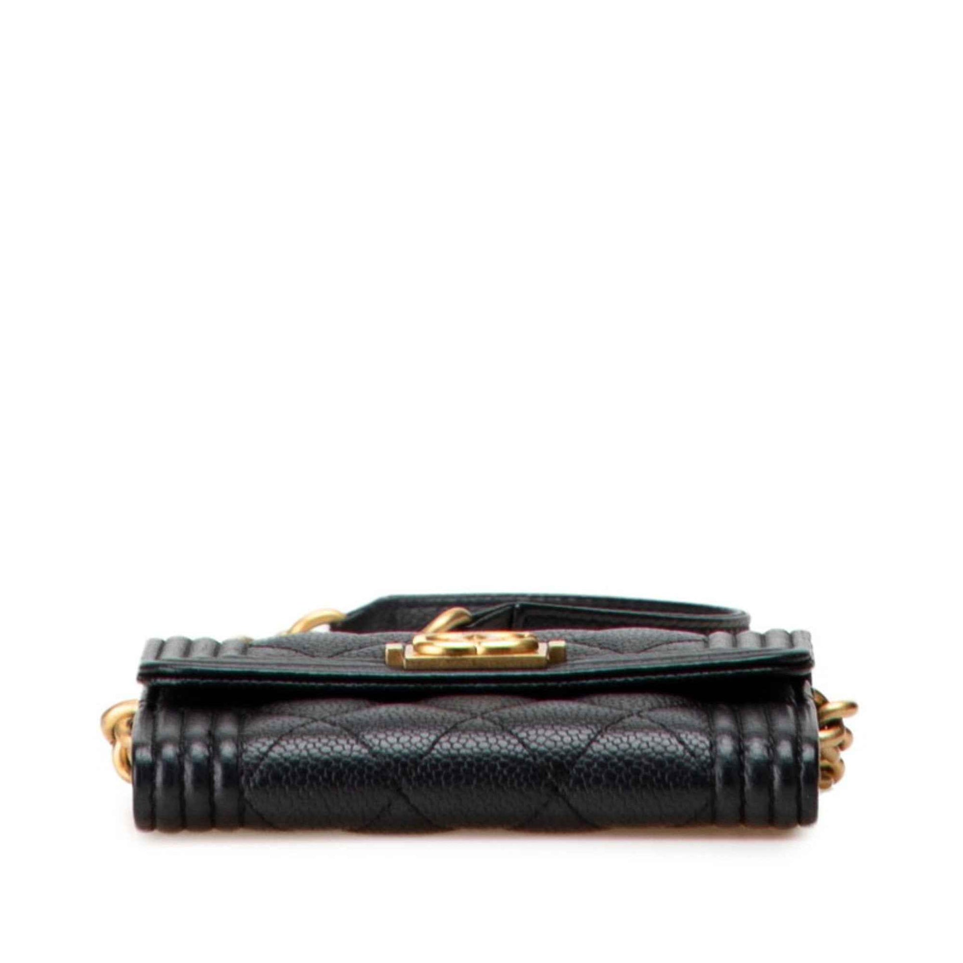 CHANEL Matelasse Boy Chanel Coco Mark Chain Shoulder Wallet in Black Caviar Skin for Women