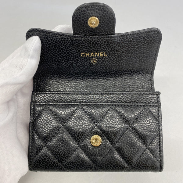 Chanel Matelasse Business Card Case in Caviar Leather, Black, Women\'s
