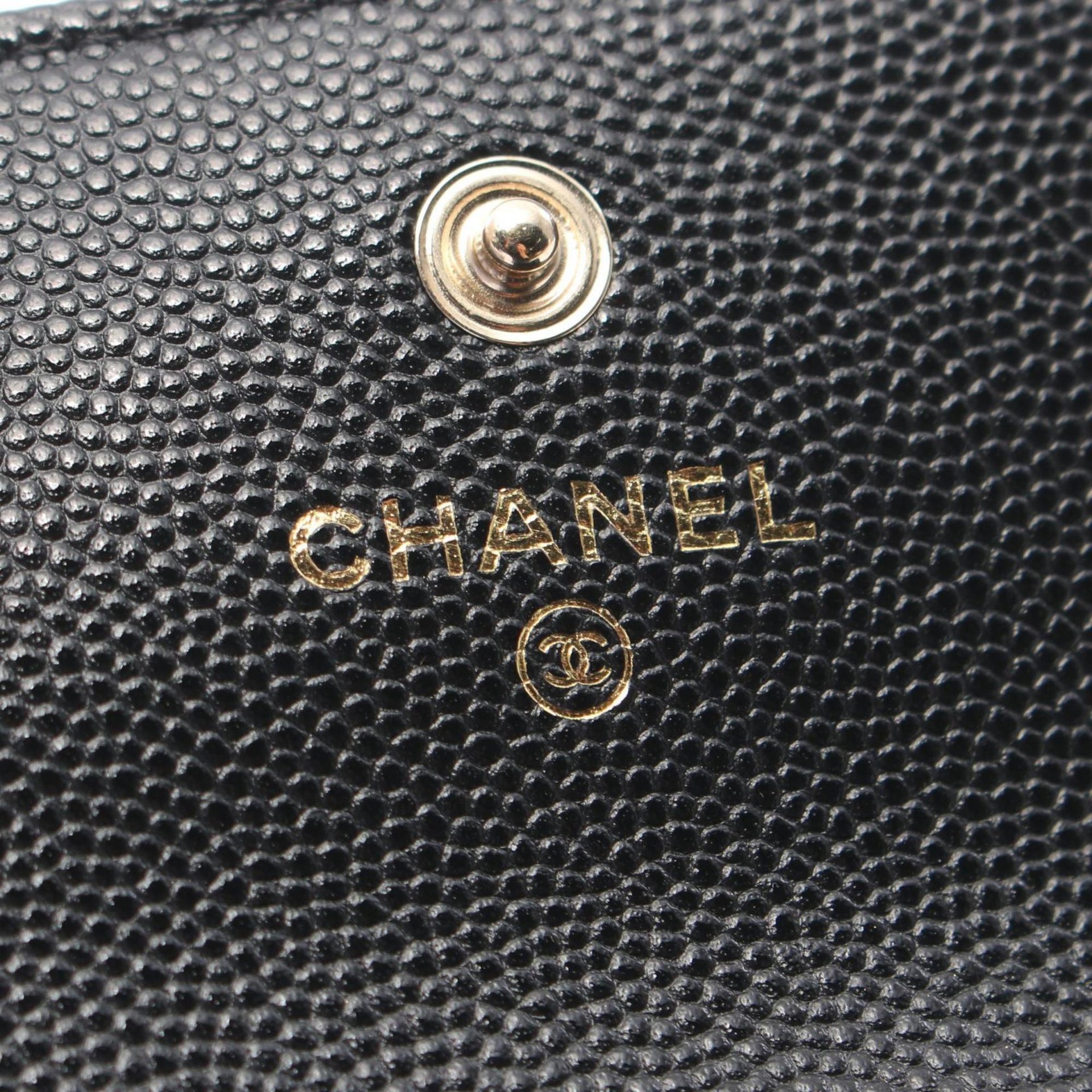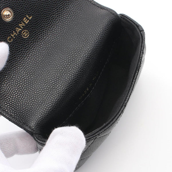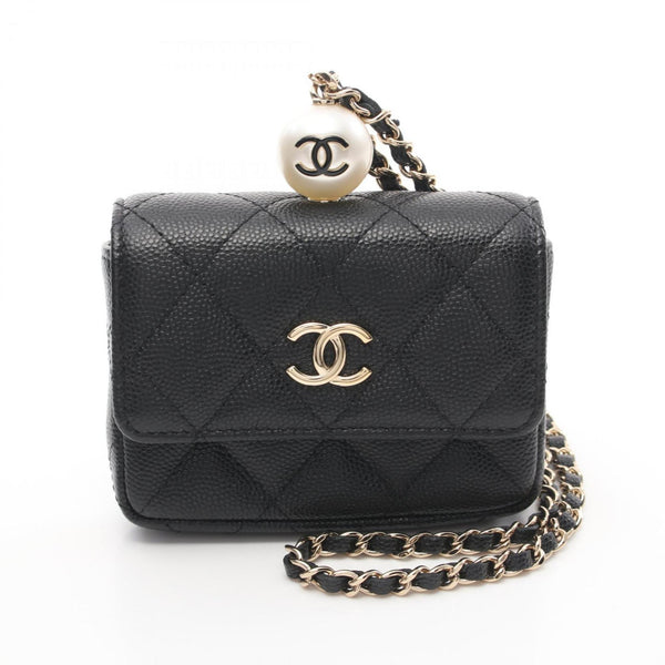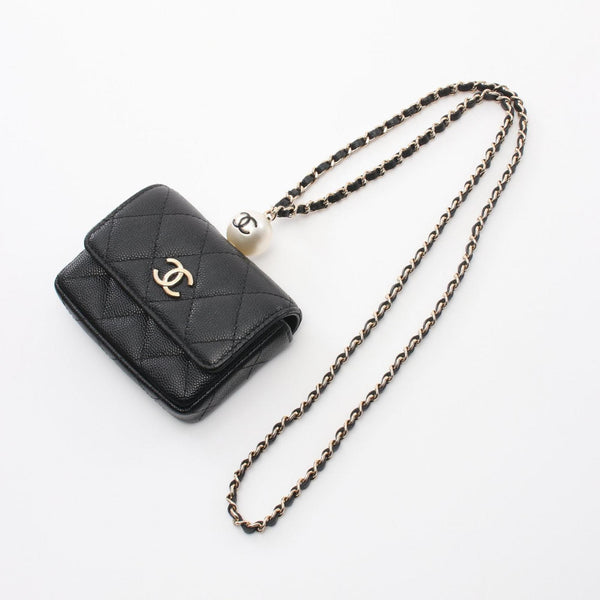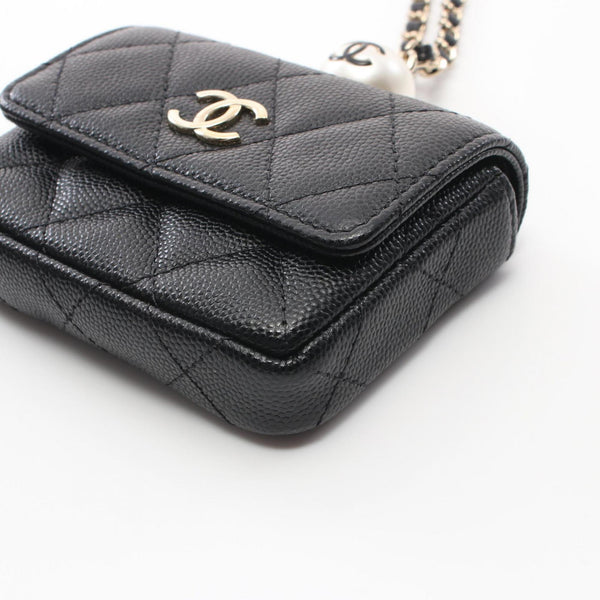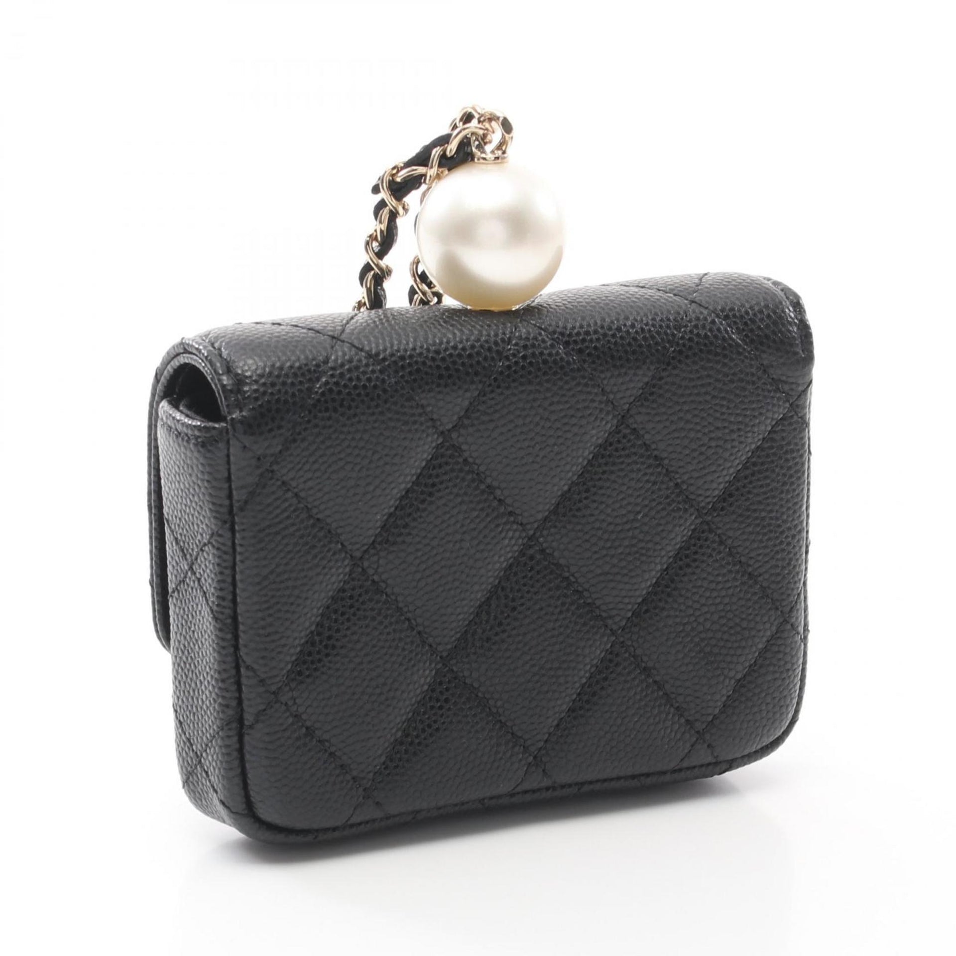 CHANEL Matelasse Chain Flap Coin Purse Wallet/Coin Case Wallet Leather Faux Pearl Women\'s Black AP2119