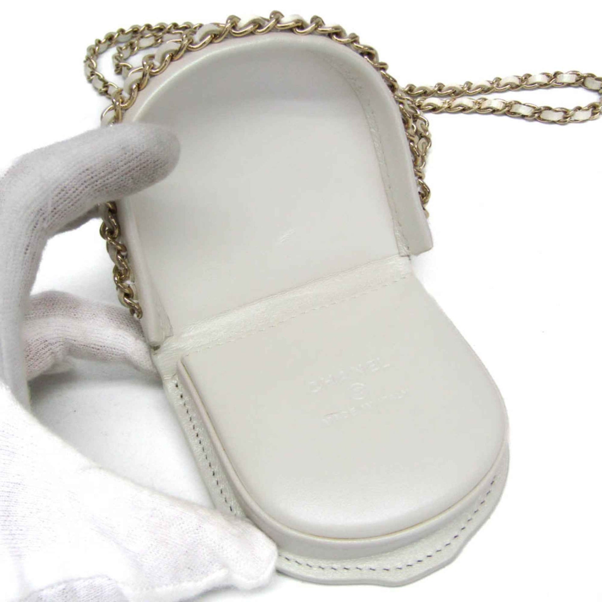Chanel Matelasse Chain Shoulder Coin Purse Women\'s Leather Chain/Shoulder Wallet Pearl White