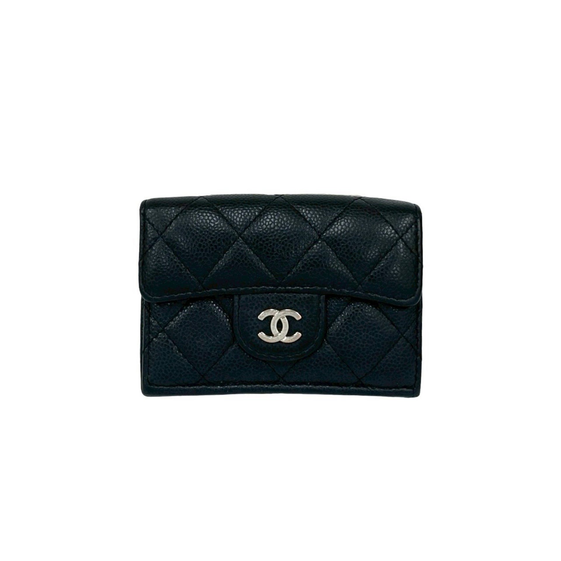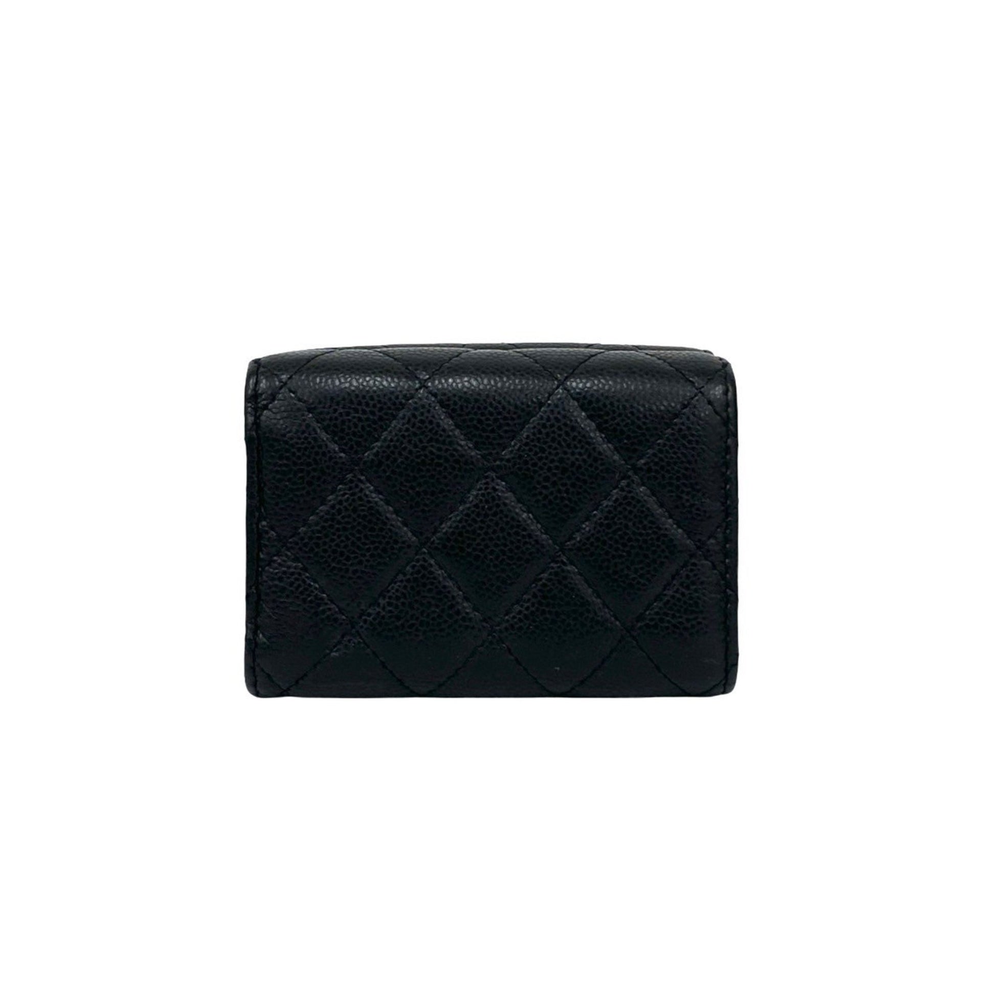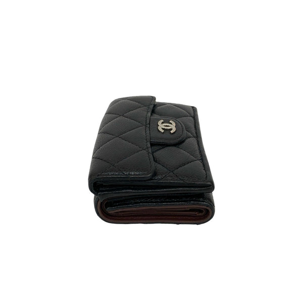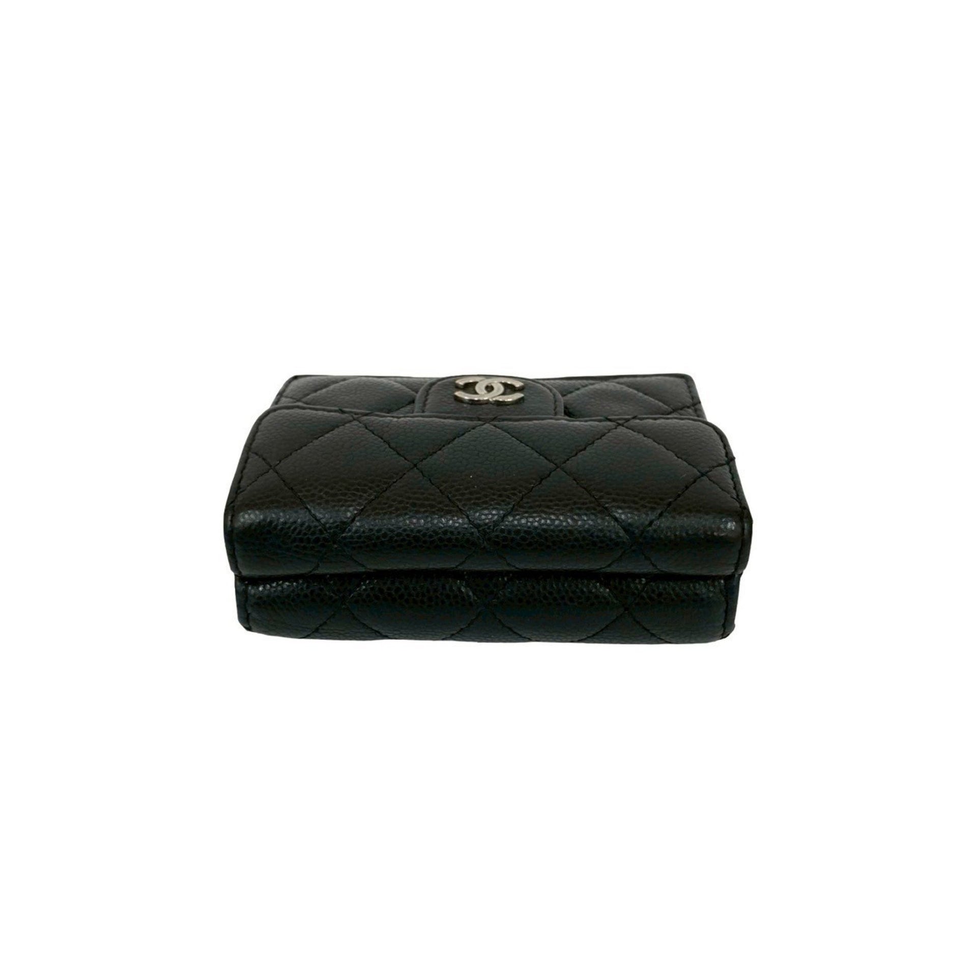 CHANEL Matelasse Coco Caviar Leather Tri-fold Wallet, Black, 47234