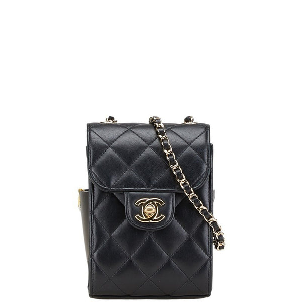 CHANEL Matelasse Coco Mark Crossbody Chain Shoulder Bag in Black Lambskin for Women